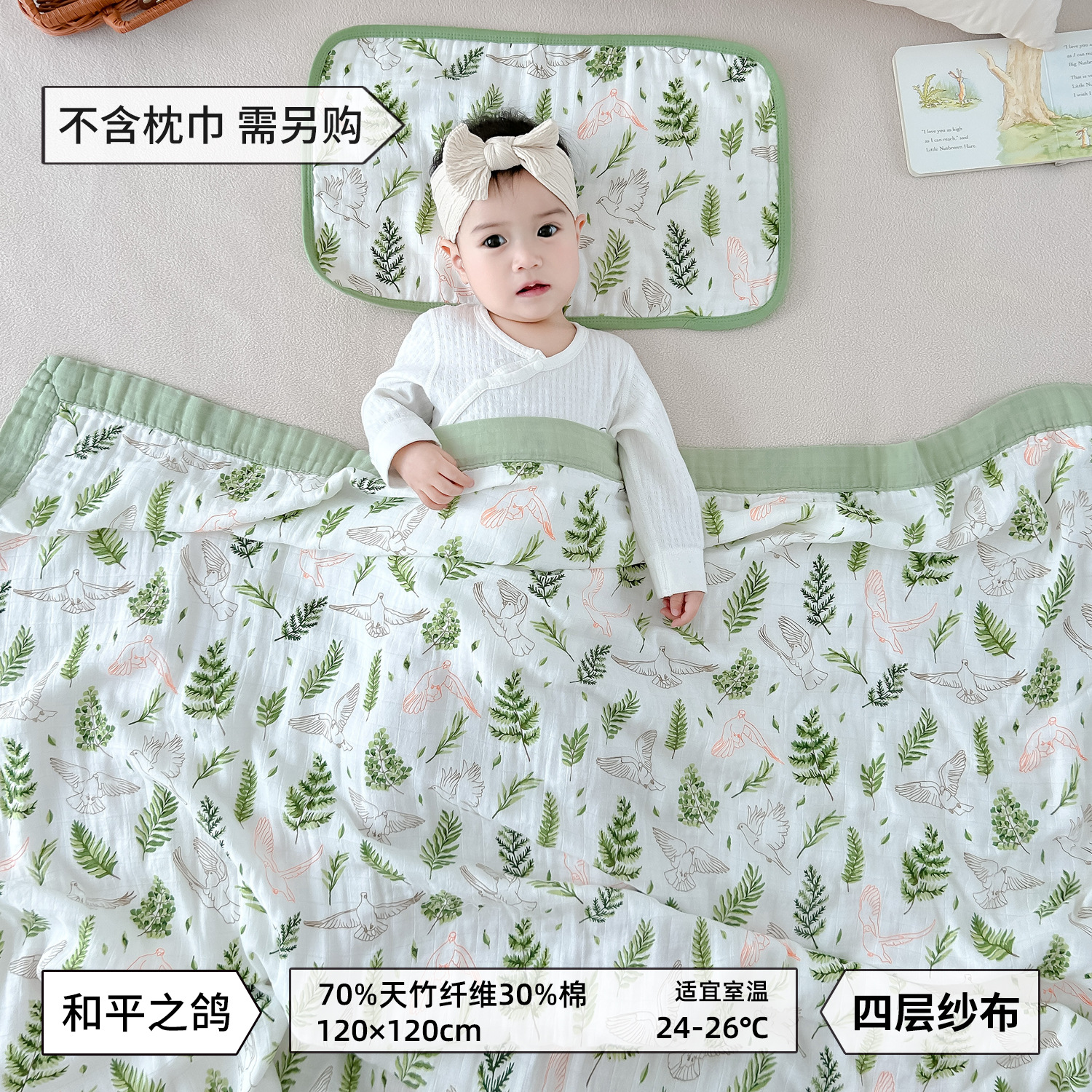 • 평화의 비둘기-대나무 면 4겹 거즈 담요 [박스형]