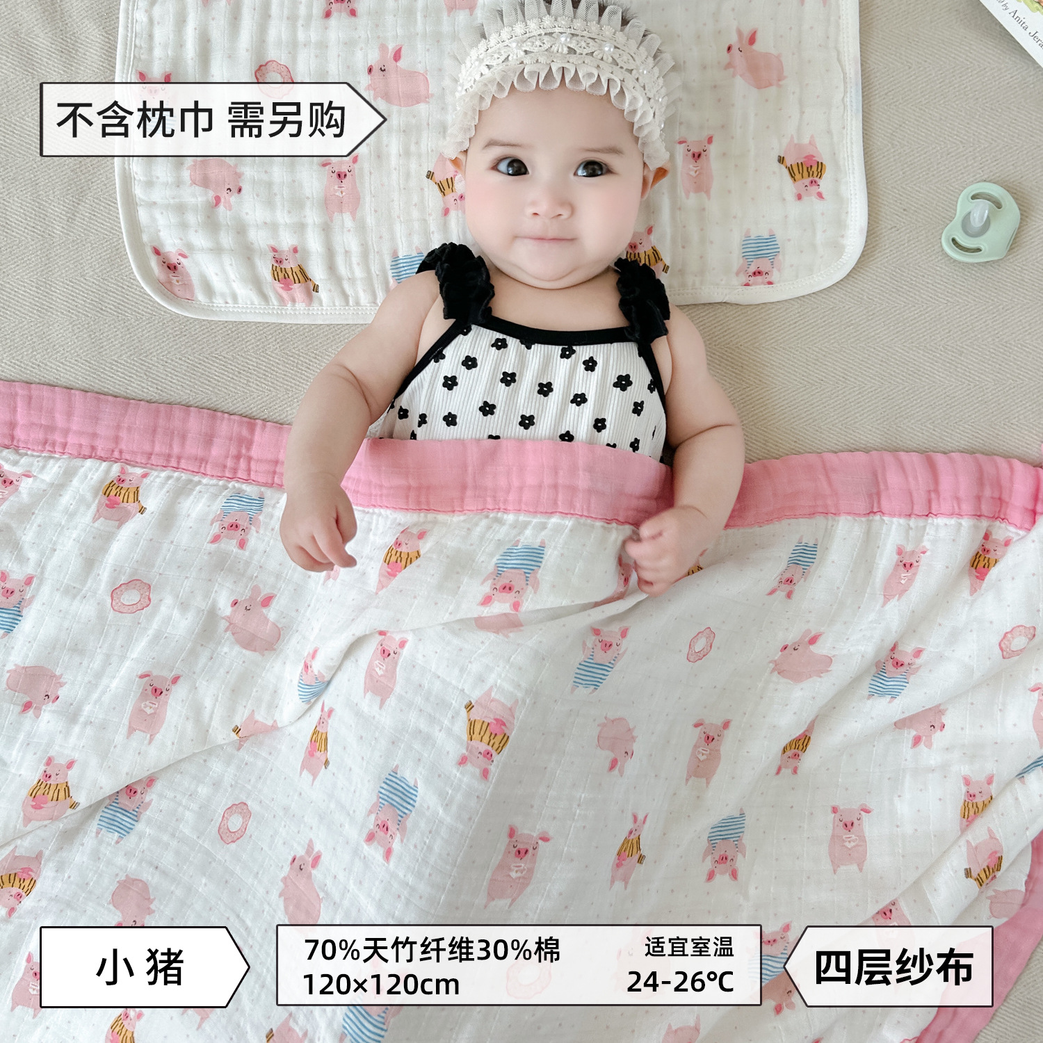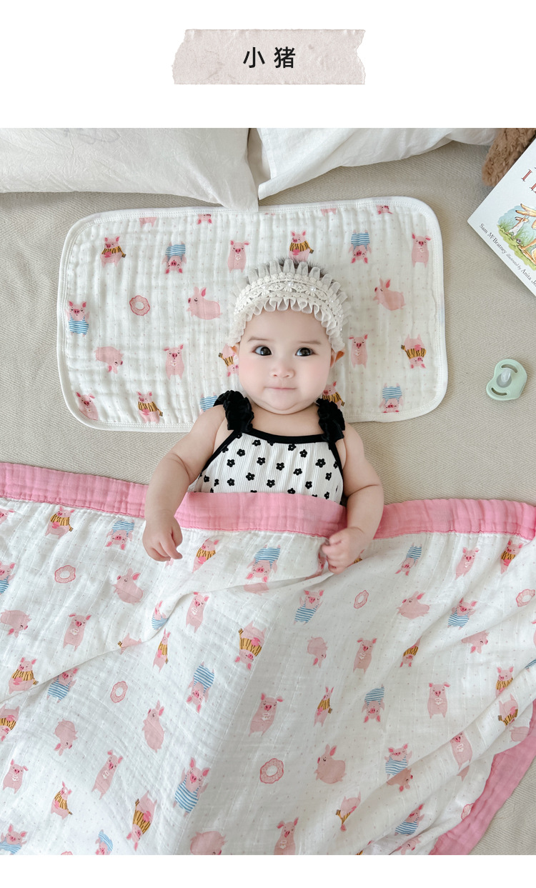 • Piggy-Bamboo 면 4겹 거즈 담요 [박스형]