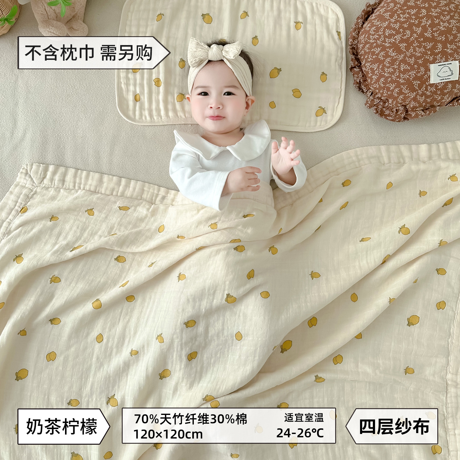 • 밀크티 레몬대나무 면 4겹 거즈 담요 [박스형]