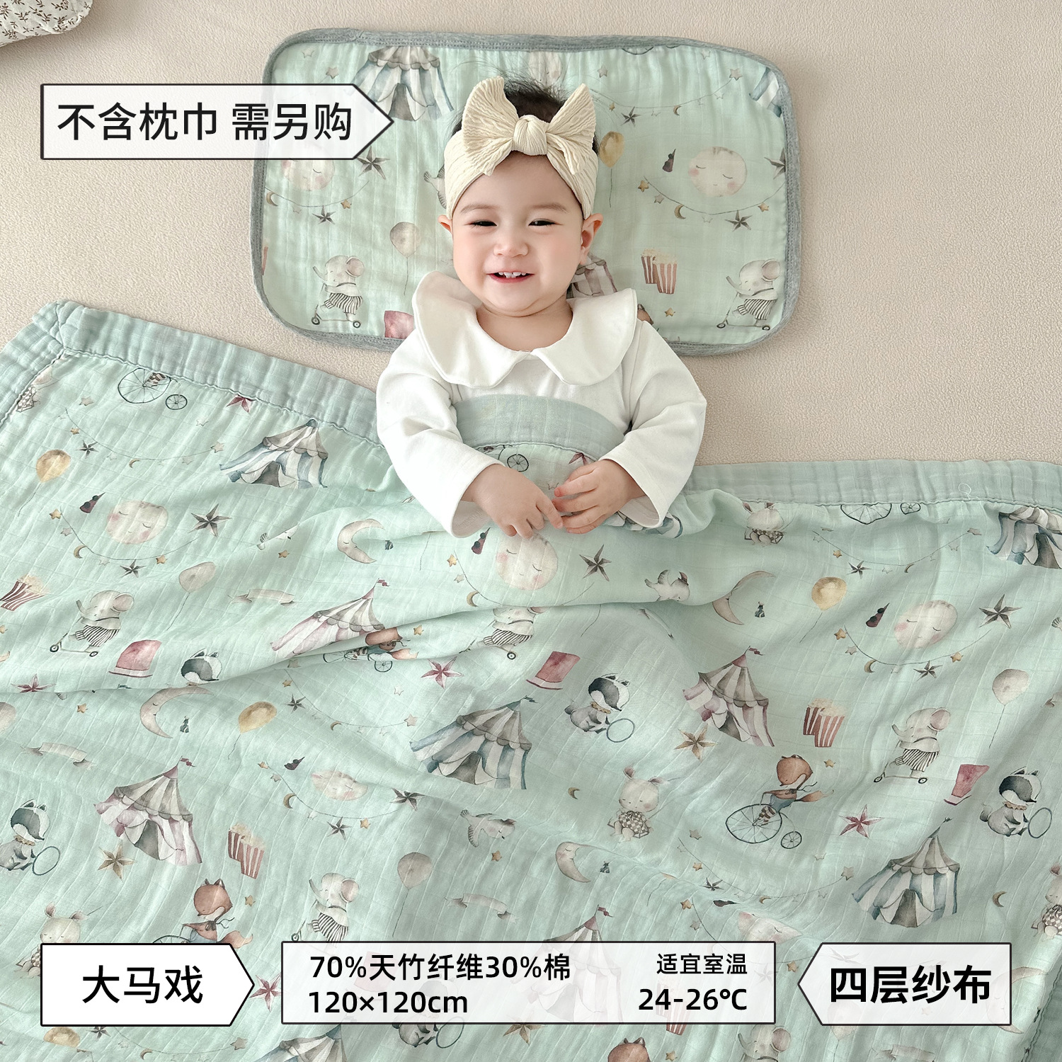 • 빅 서커스-대나무 면 4겹 거즈 담요 [박스형]