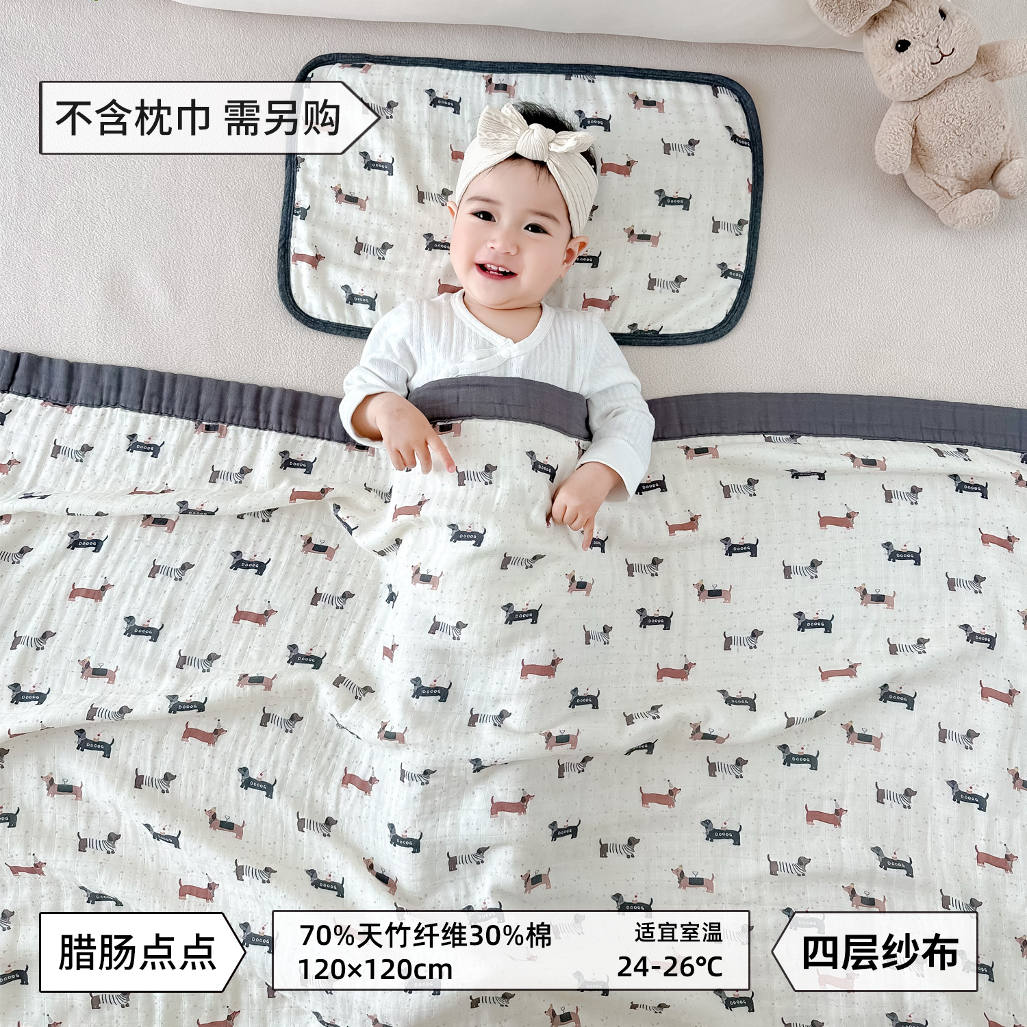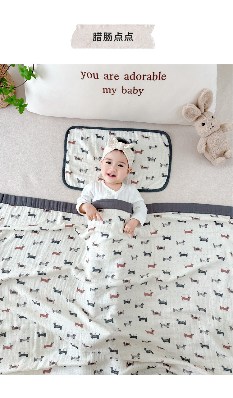 • 닥스훈트 도트 대나무 면 4겹 거즈 담요 [박스형]