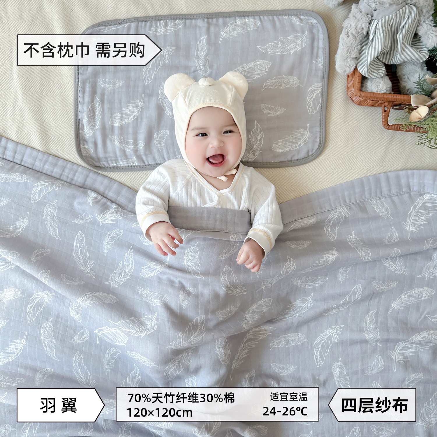 • 날개-대나무면 4겹 거즈 담요 [박스형]