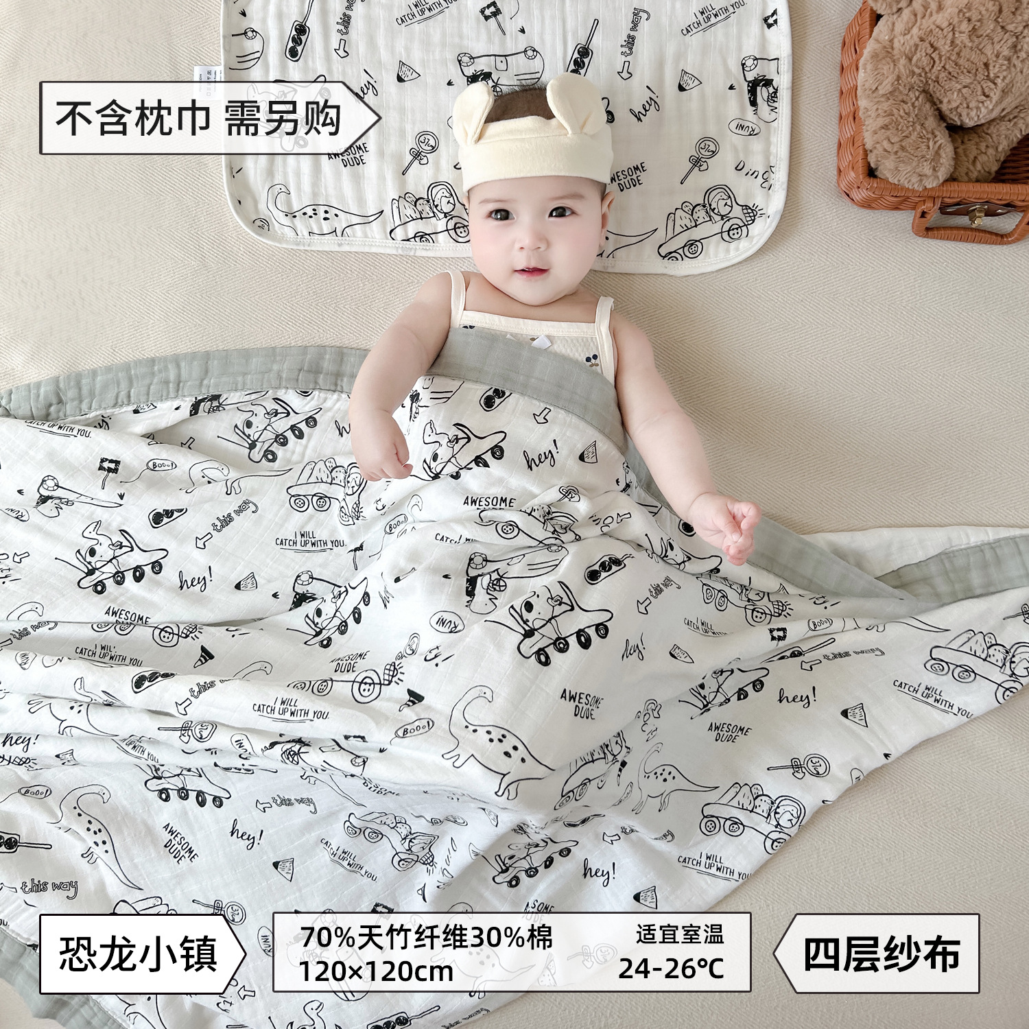 • 공룡마을-대나무면 4겹 거즈 담요 [박스형]