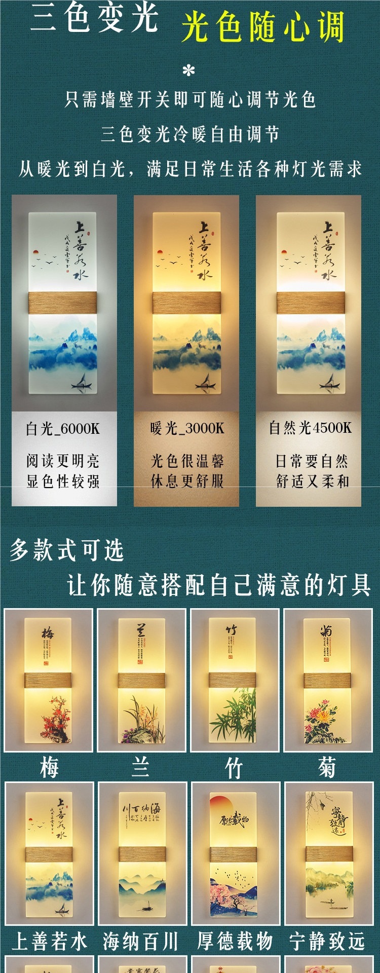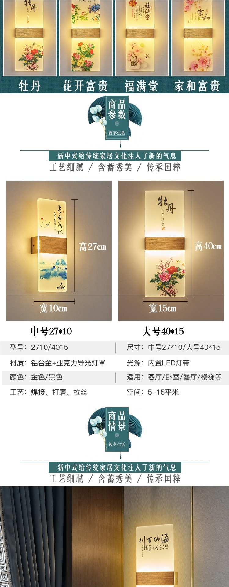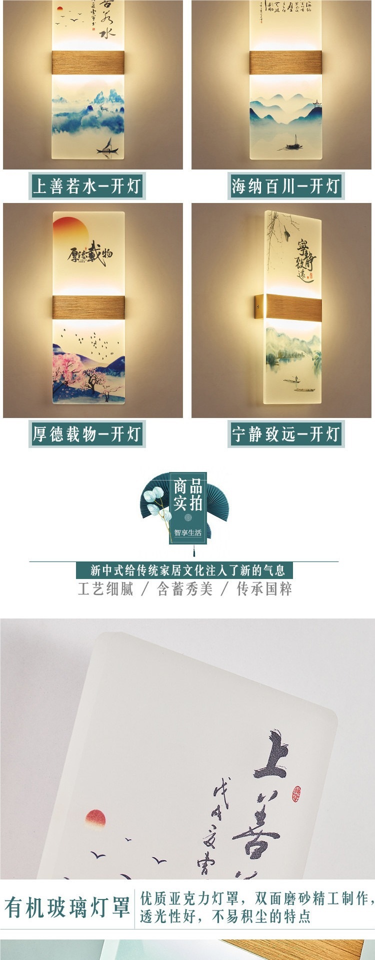 벽 램프 침실 램프 새로운 중국 스타일 거실 배경 벽 램프 현대 간단한 복도 계단 통로 벽 램프스토어 가기