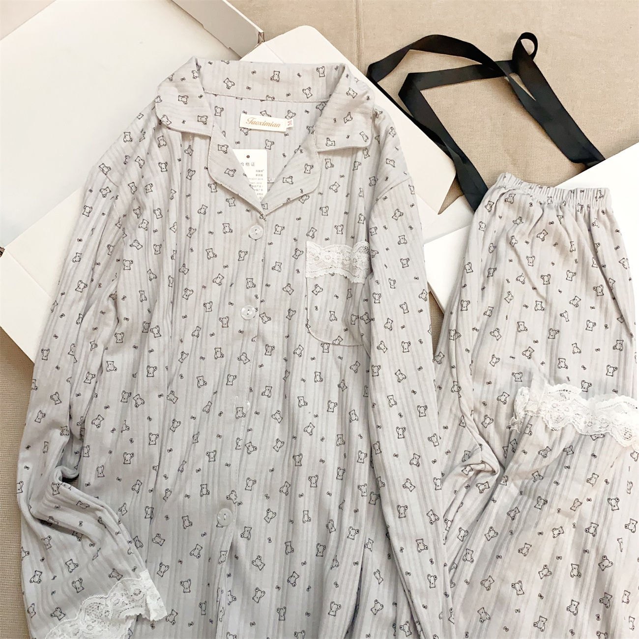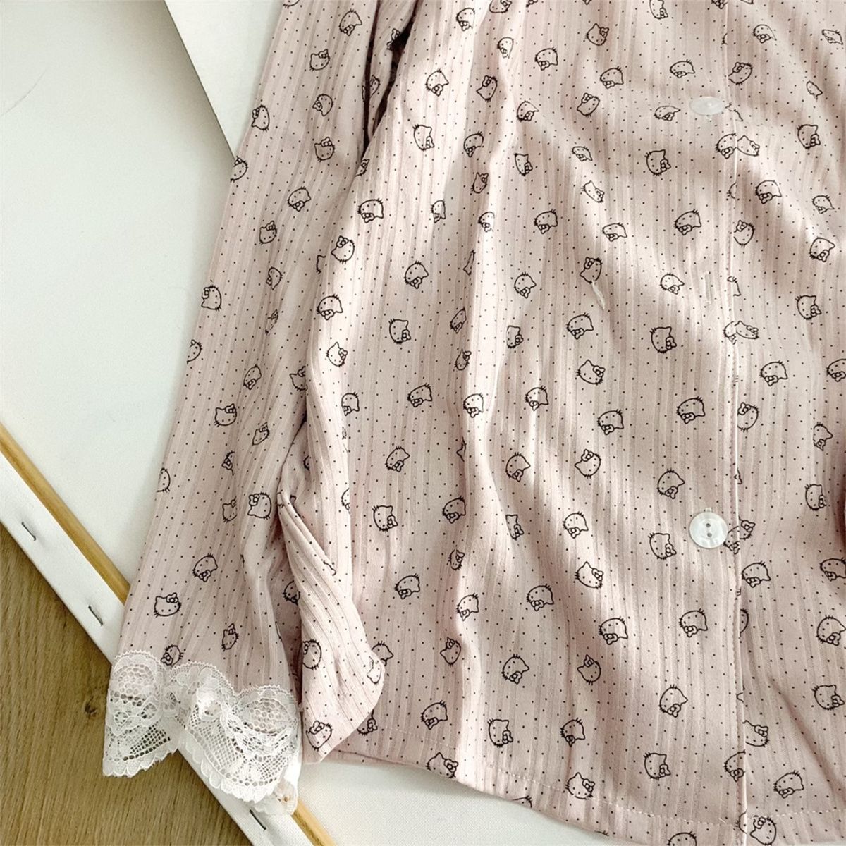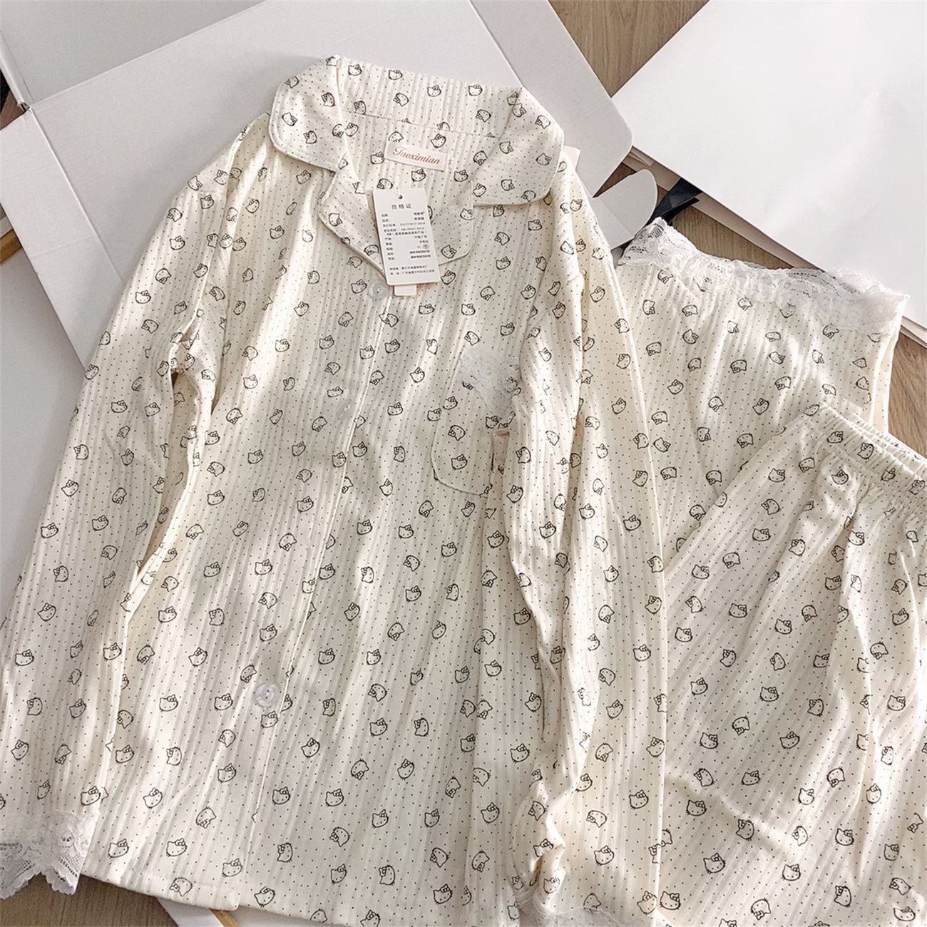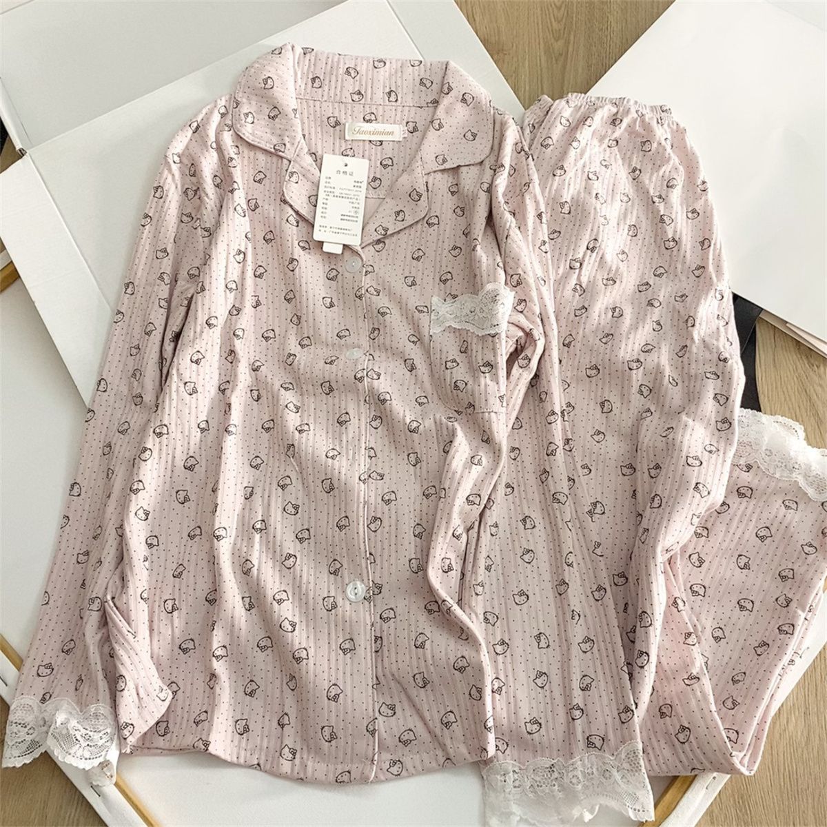 레이스 닷 키티 고양이 잠옷 여성의 봄과 가을 새로운 긴 소매 Ins 스타일 일본식 만화 홈 의류 세트 외주스토어 가기