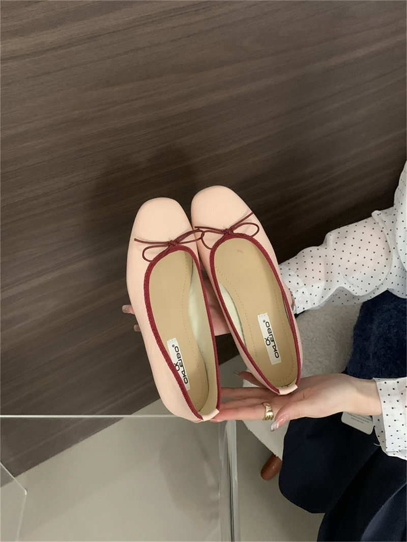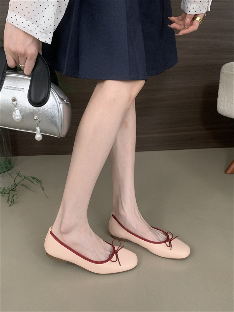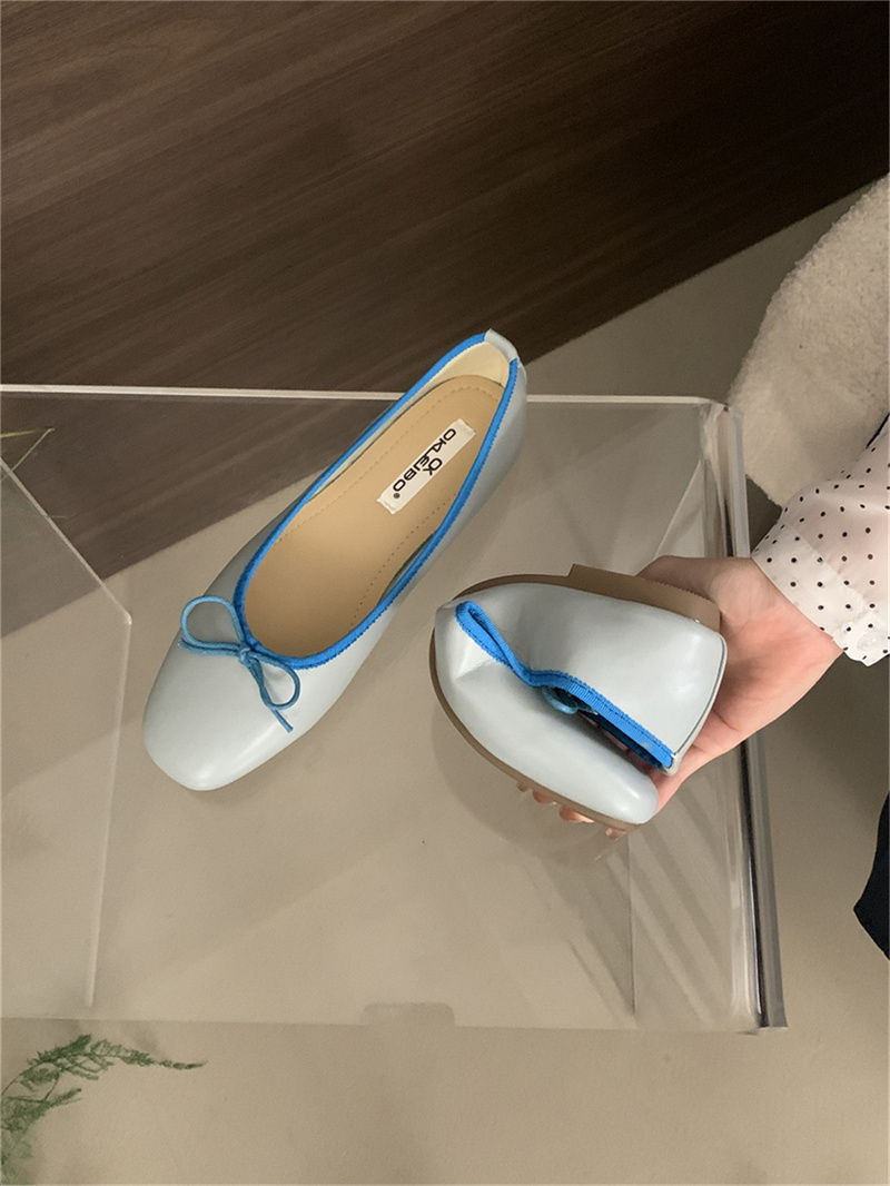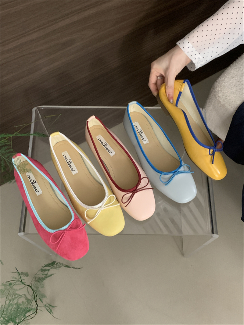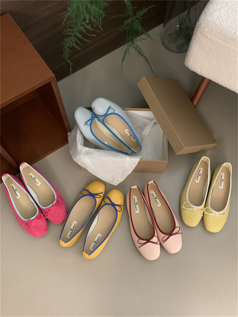 샤넬 스타일 부드러운 활 플랫 싱글 레이어 신발 여성의 2025 새로운 도착 얕은 입 이브닝 스타일 틈새 컬러 블록 발레 신발