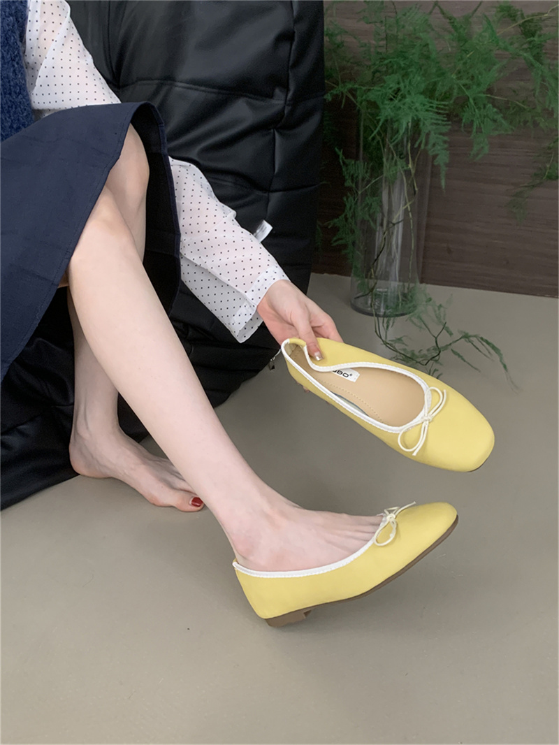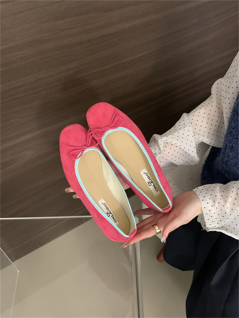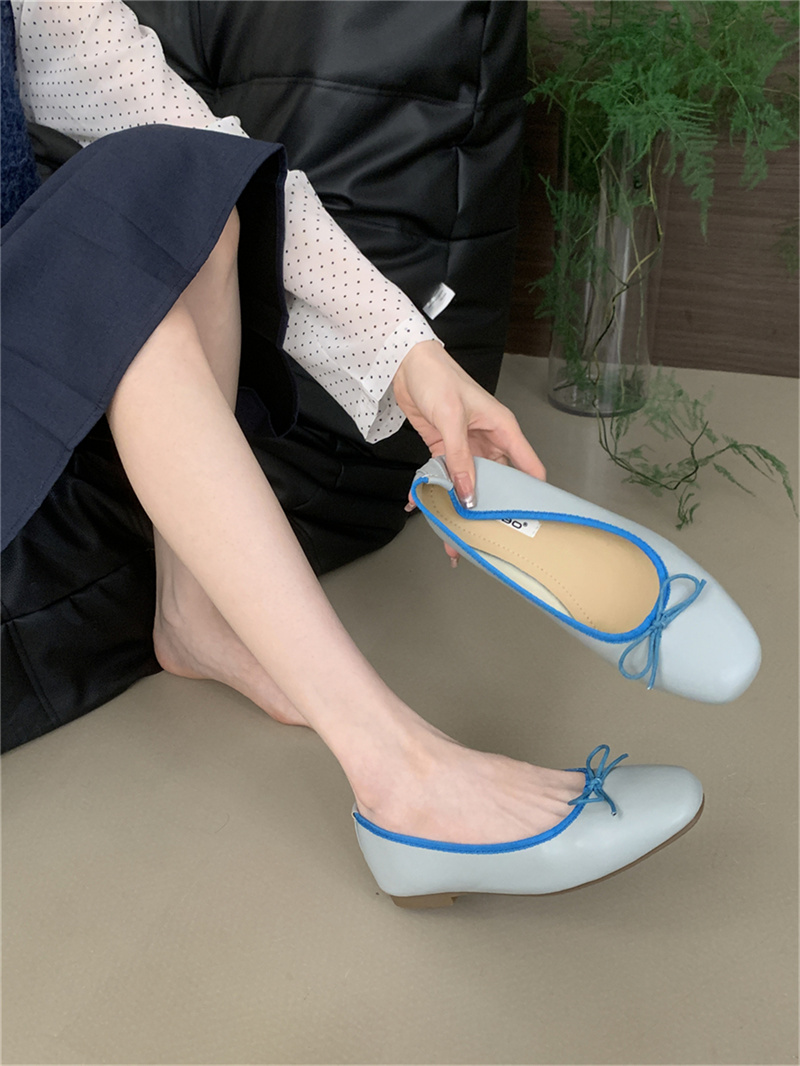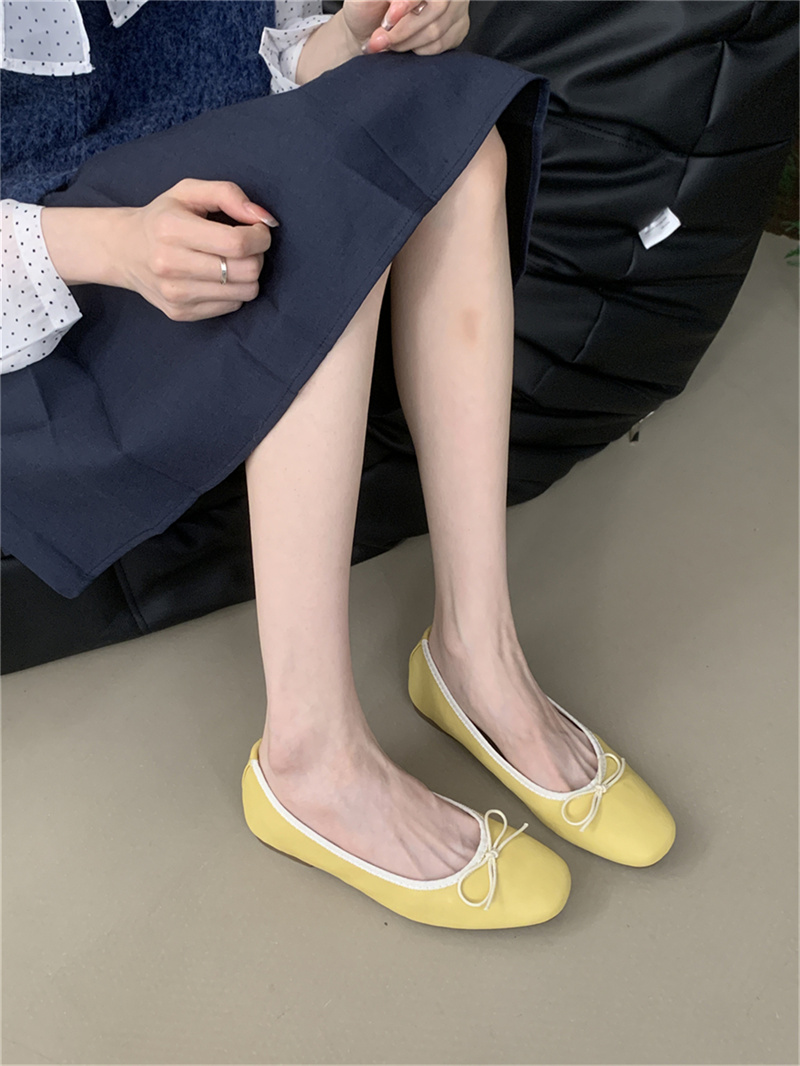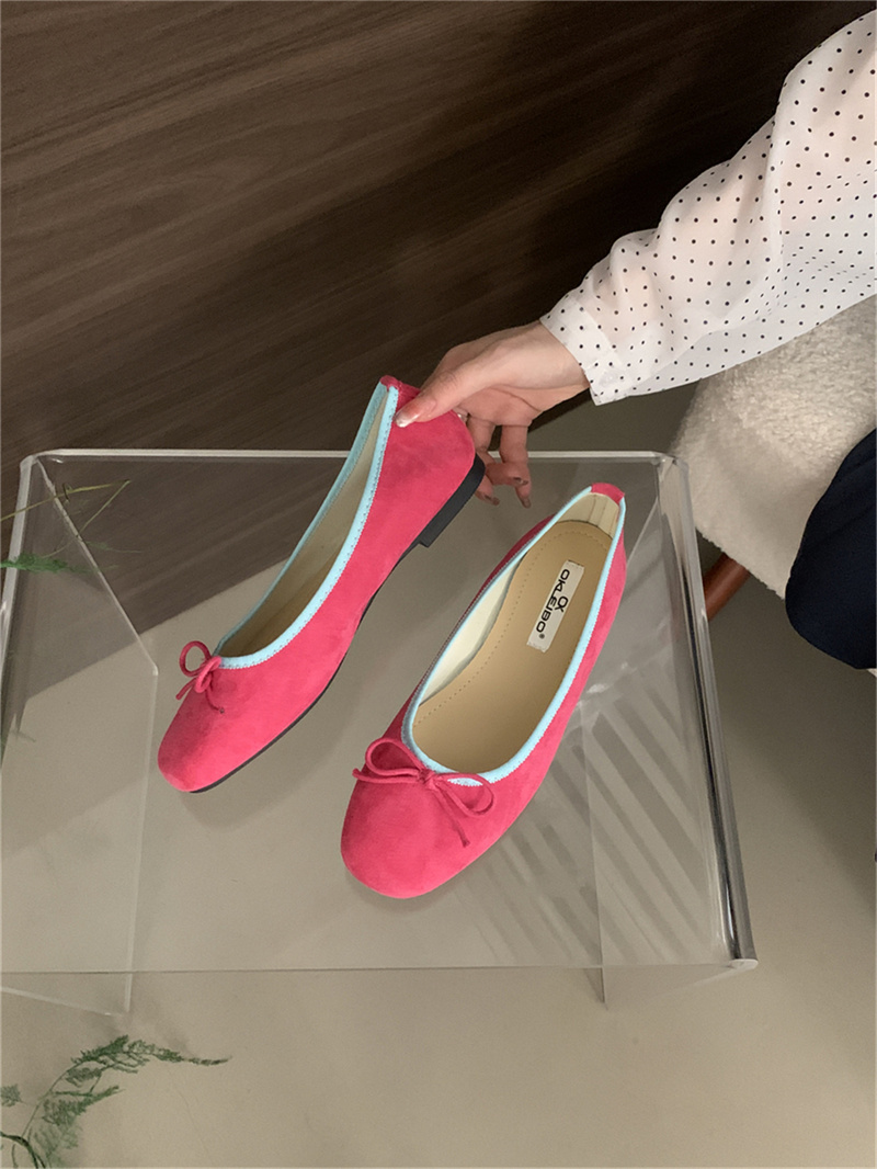 샤넬 스타일 부드러운 활 플랫 싱글 레이어 신발 여성의 2025 새로운 도착 얕은 입 이브닝 스타일 틈새 컬러 블록 발레 신발