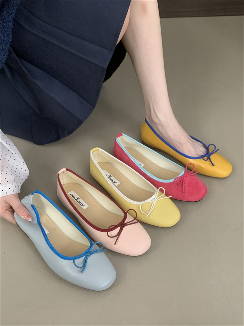 샤넬 스타일 부드러운 활 플랫 싱글 레이어 신발 여성의 2025 새로운 도착 얕은 입 이브닝 스타일 틈새 컬러 블록 발레 신발스토어 가기