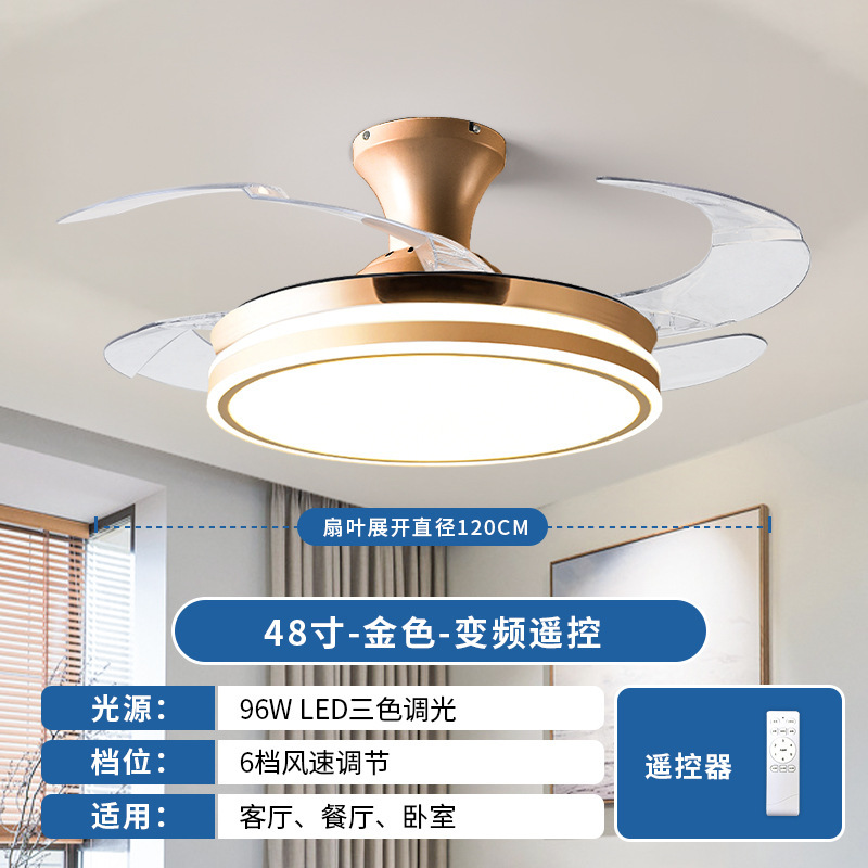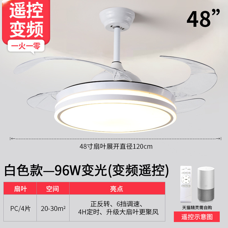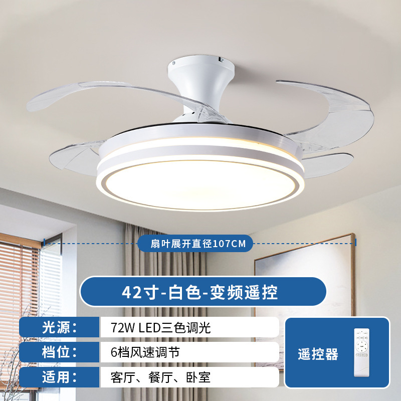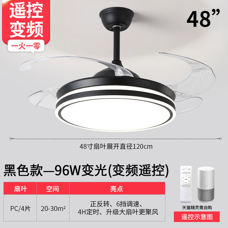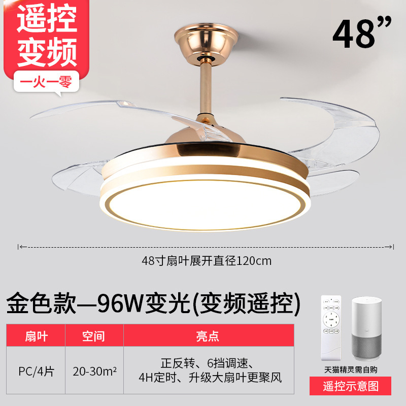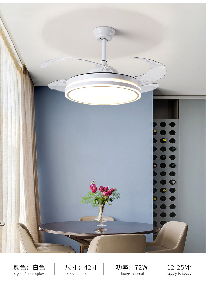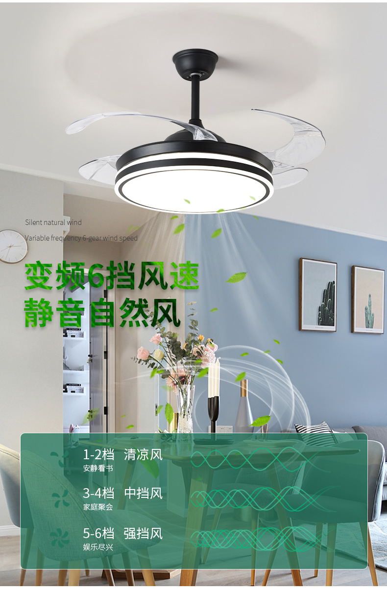 보이지 않는 팬 램프 거실 샹들리에 북유럽 빛 럭셔리 지능형 제어 보이지 않는 침실 다이닝 룸 통합 천장 팬 램프