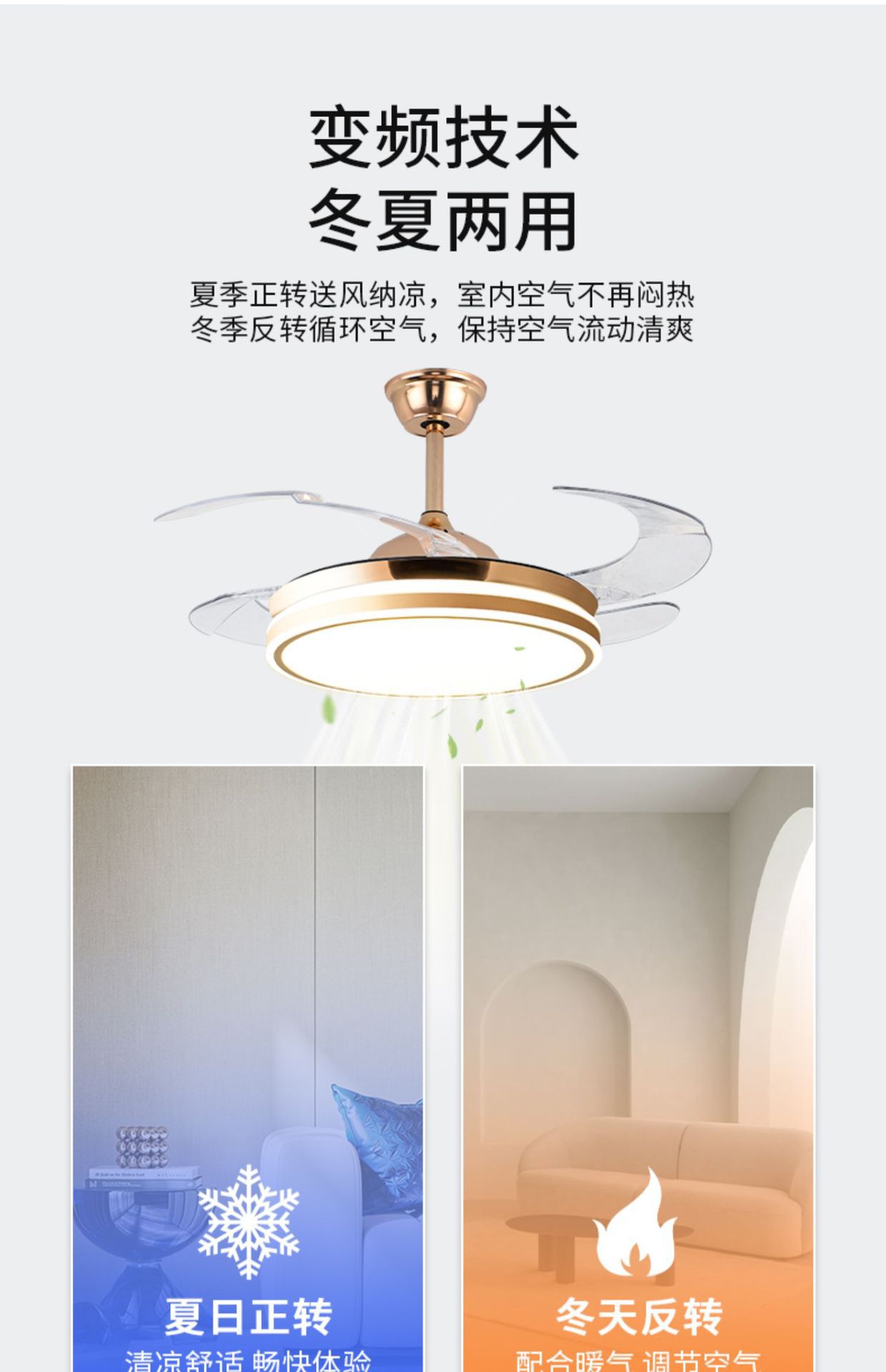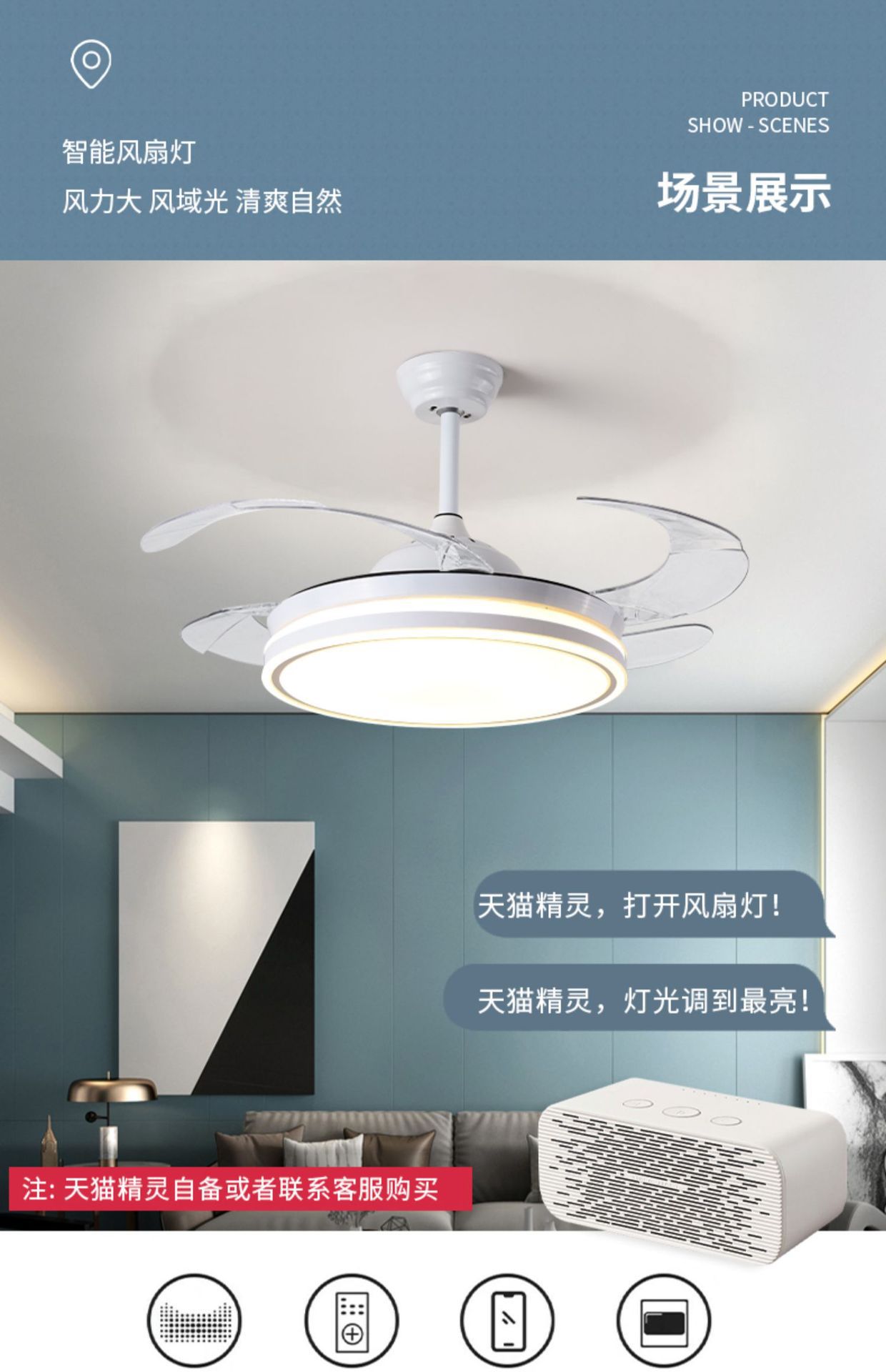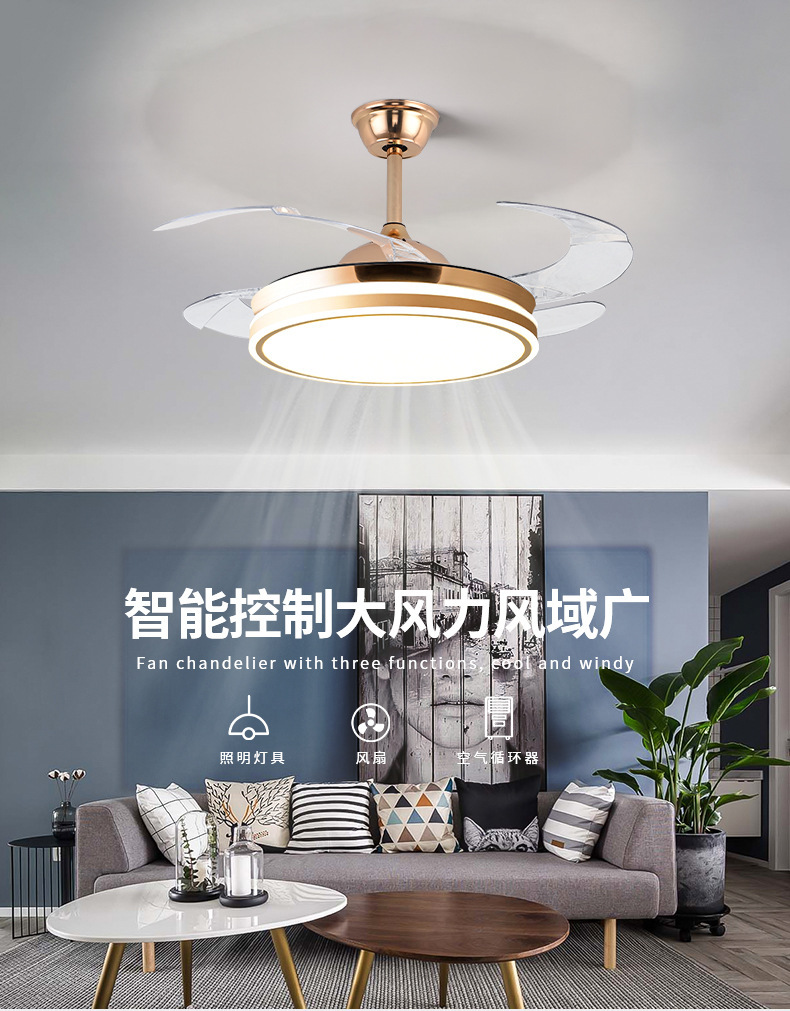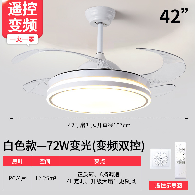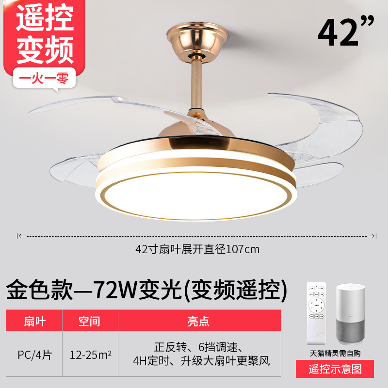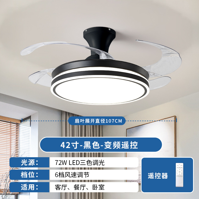 보이지 않는 팬 램프 거실 샹들리에 북유럽 빛 럭셔리 지능형 제어 보이지 않는 침실 다이닝 룸 통합 천장 팬 램프