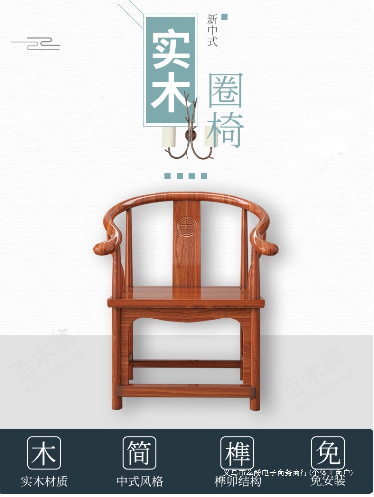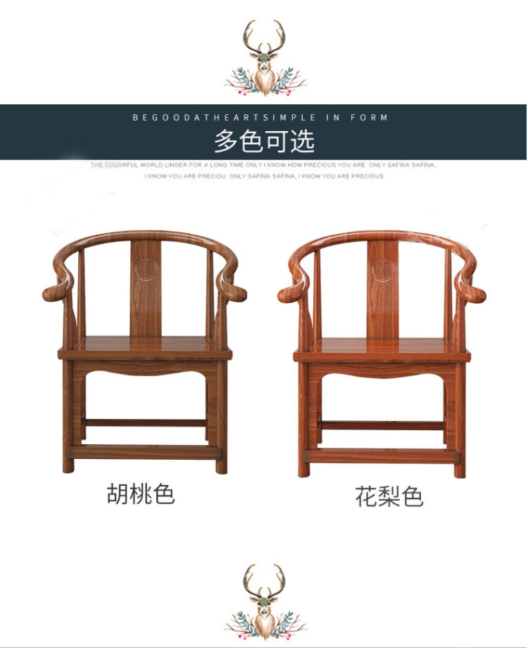 단단한 나무 의자 등받이 의자 원형 의자 마스터 의자 공식 모자 의자 3 조각 세트 골동품 의자 중국 차 의자스토어 가기