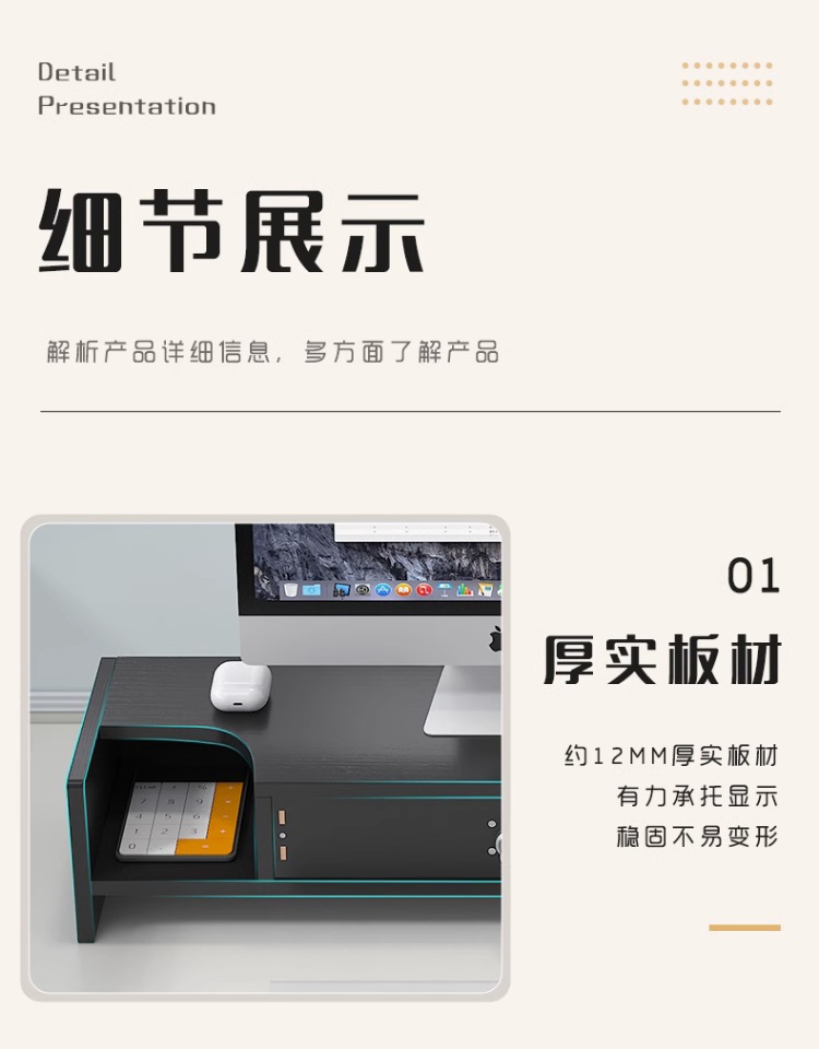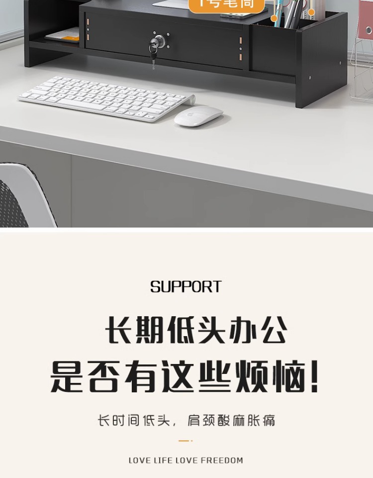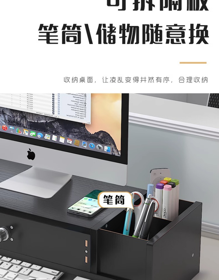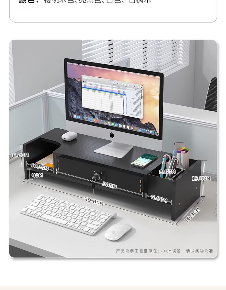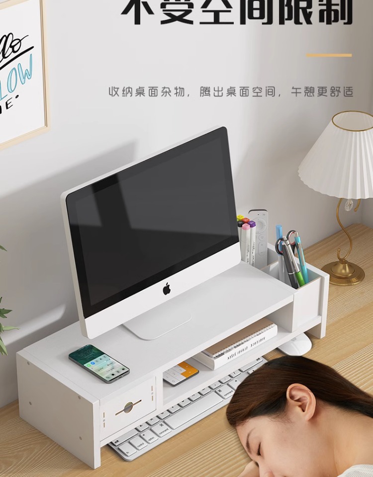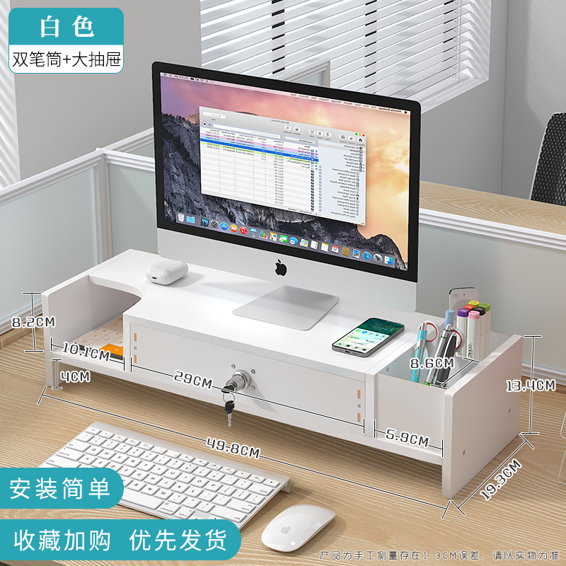 컴퓨터 모니터 잠금 서랍 사무실 데스크톱 스토리지 랙 워크 스테이션 데스크톱 디스플레이 랙으로 높은 랙