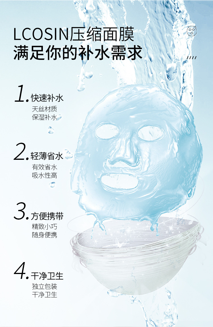 실크 압축 마스크 젖은 응용 프로그램 스파 일회용 마스크 종이 경량 독립적 인 물 절약 소프트스토어 가기