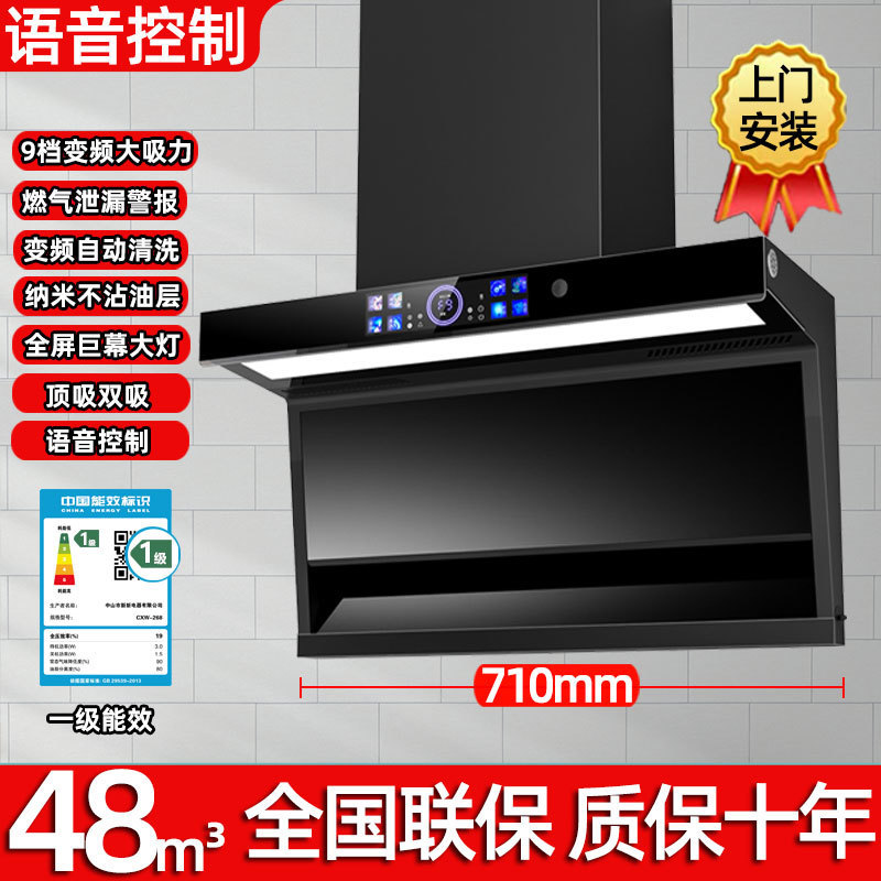 Shouai 후드 가정용 주방 대형 흡입 새로운 지능형 음성 범위 후드 가스 스토브 세트