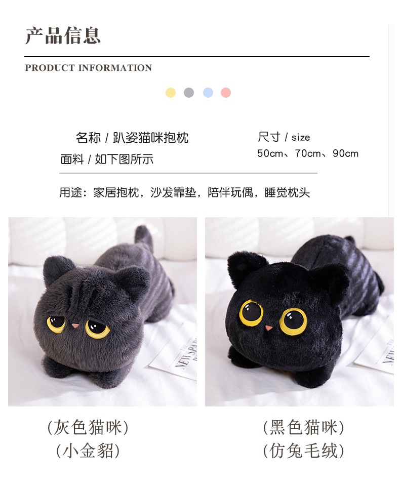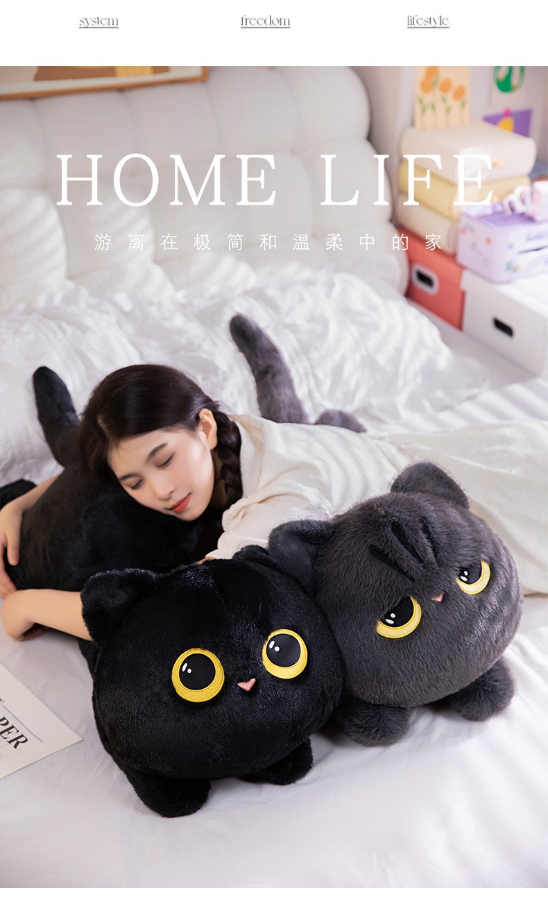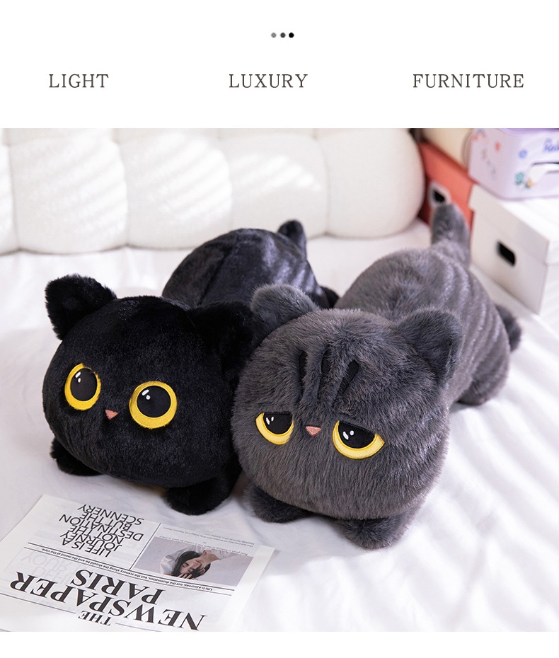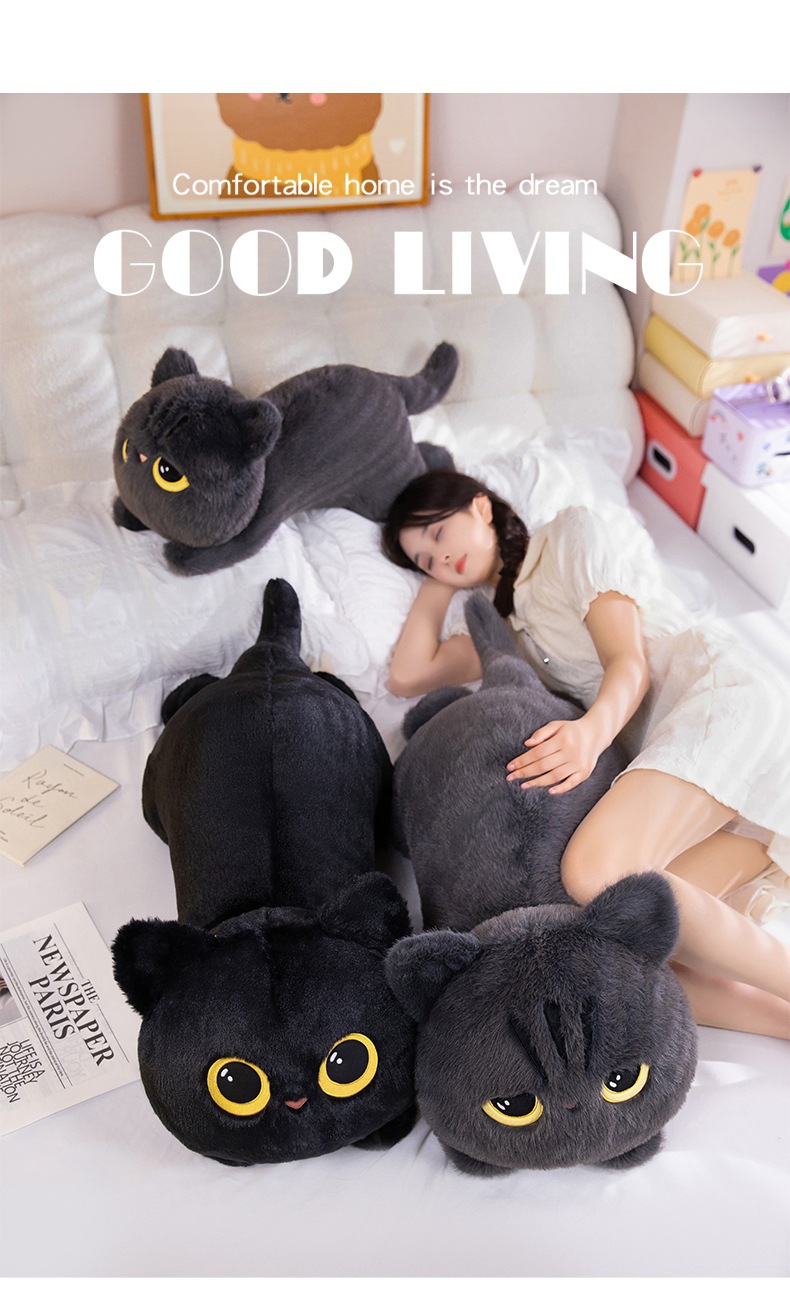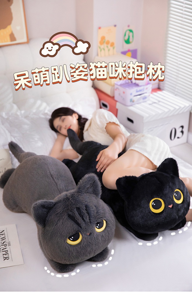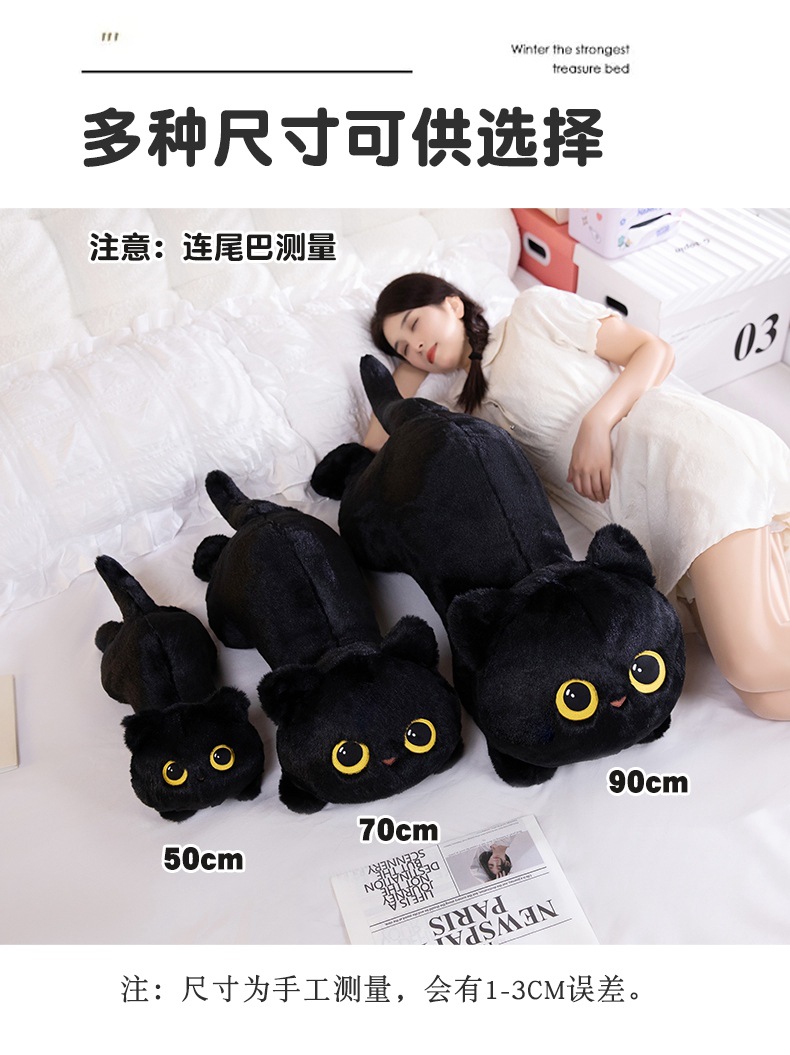 귀여운 거짓말 자세 검은 고양이 인형 베개 인형 소년 소녀를위한 인형 잠자는 긴 고양이 인형 봉제 인형 클립 다리스토어 가기