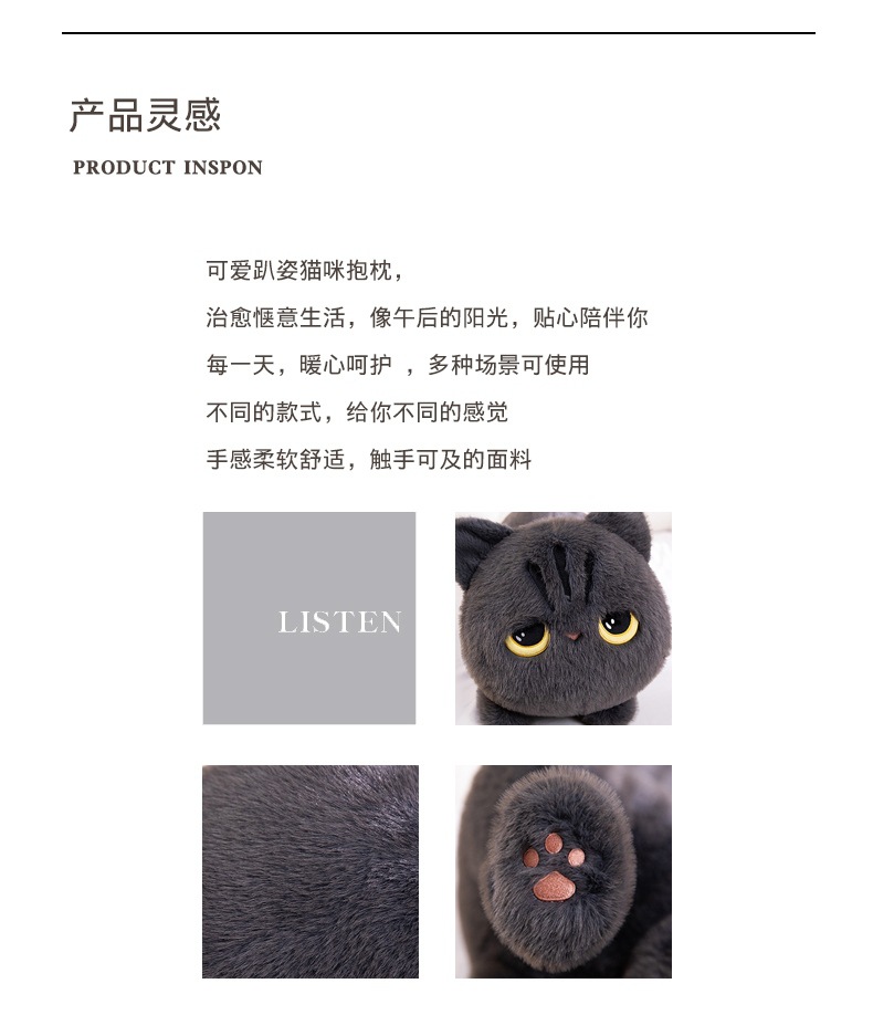 귀여운 거짓말 자세 검은 고양이 인형 베개 인형 소년 소녀를위한 인형 잠자는 긴 고양이 인형 봉제 인형 클립 다리