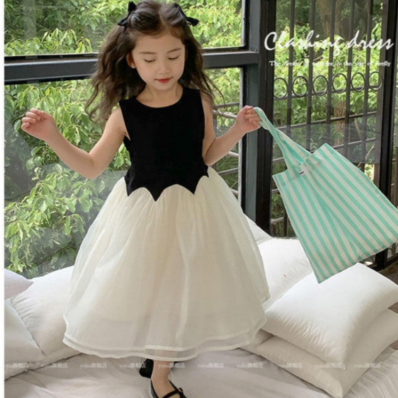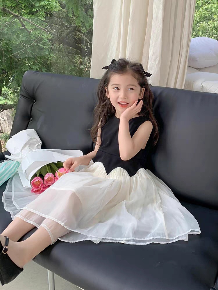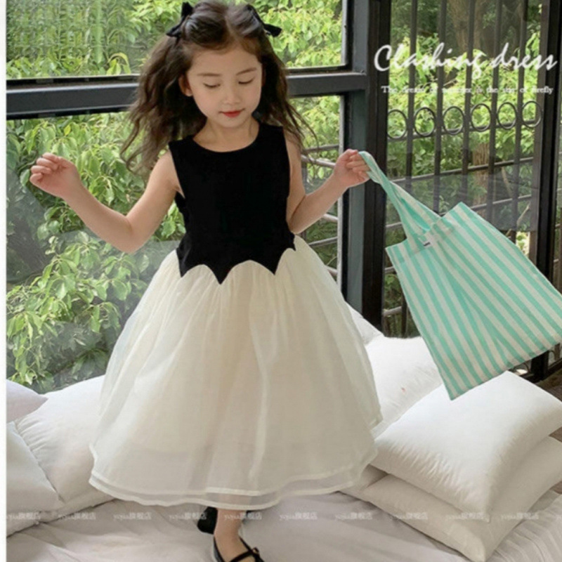 소녀의 원피스 여름 스커트 어린이 베일 스커트 한국 스타일 소녀 유행 조끼 스커트 여름 공주 스커트