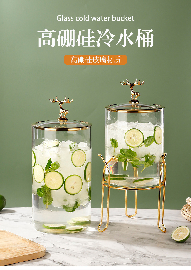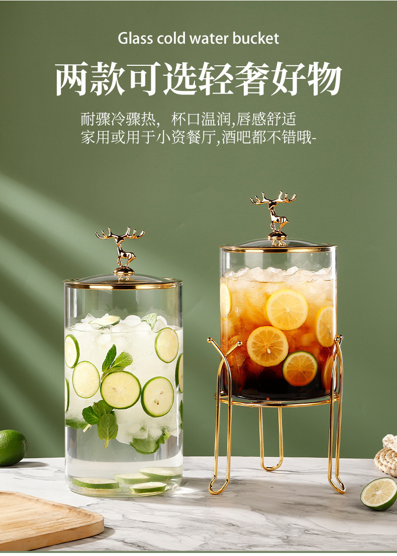 인터넷 연예인 콜라 버킷 탭 유리 항아리 맥주 양동이 과일 차 과일 주스 딩 와인 베이킹 병이있는 셀프 서비스 음료 버킷