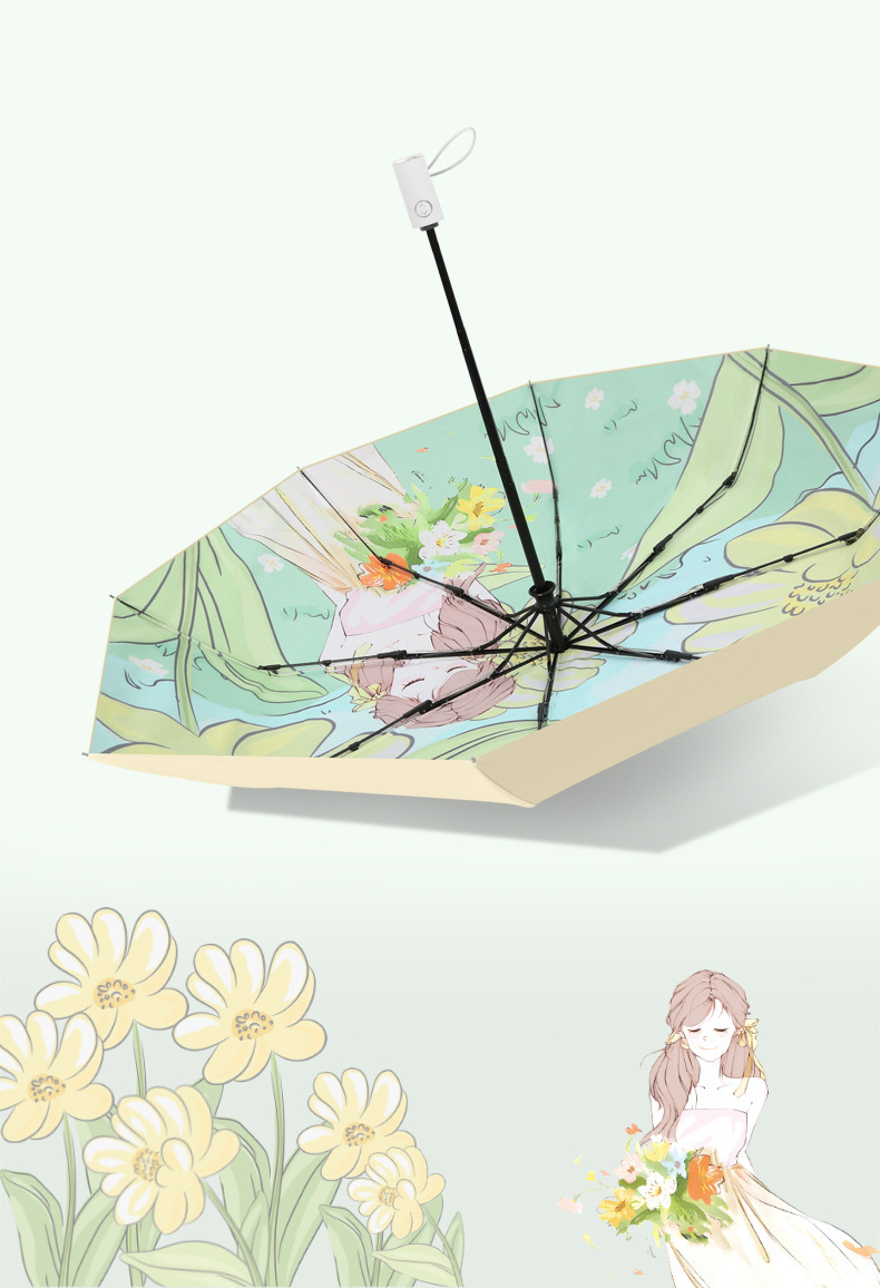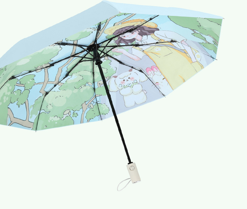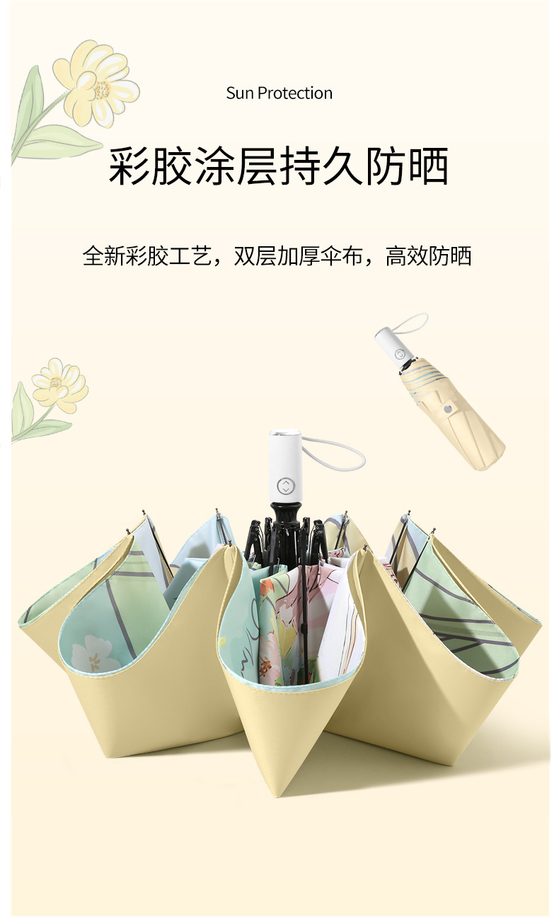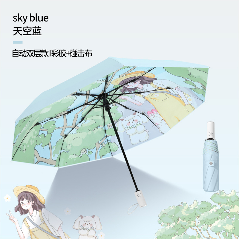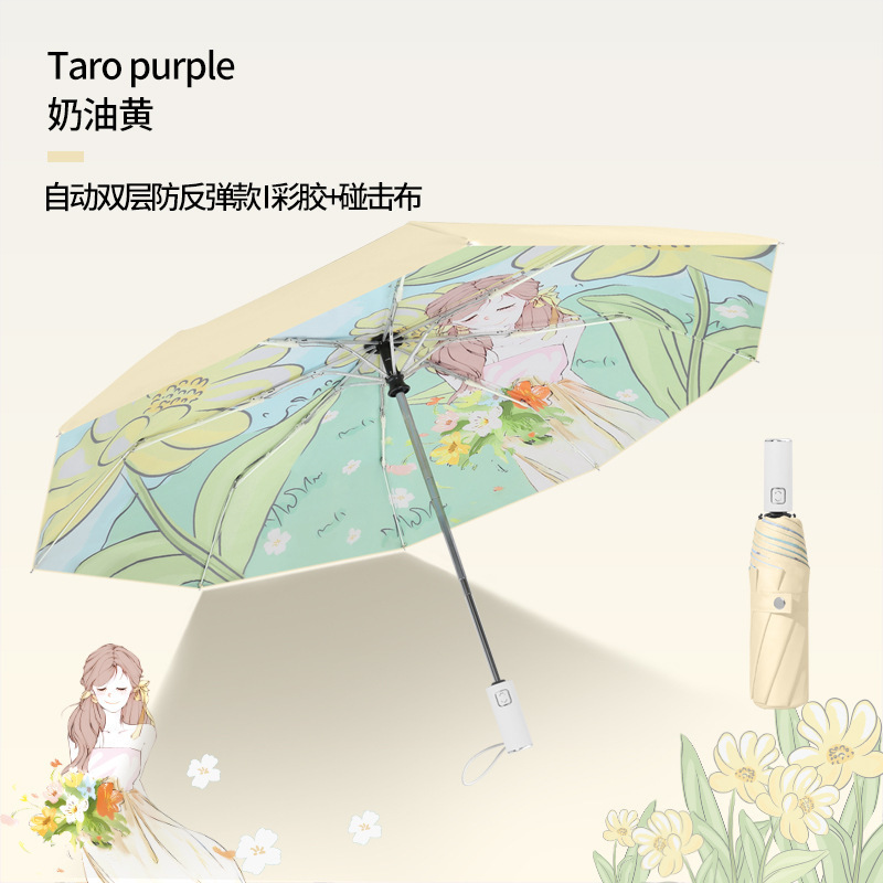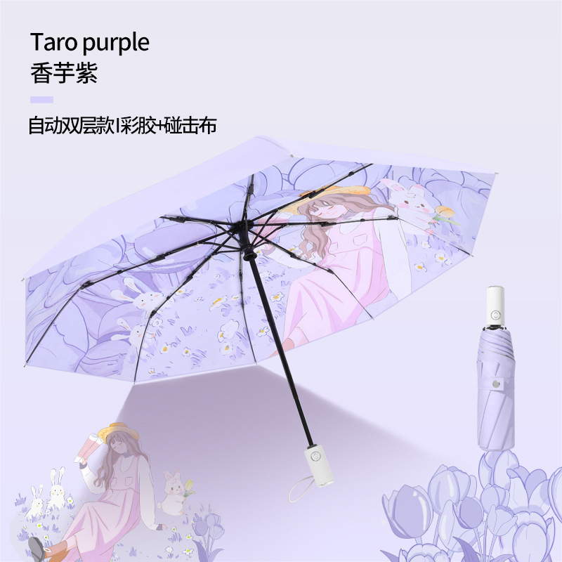 완전 자동 우산 더블 레이어 안티 리바운드 3 배 우산 여성의 선 스크린 안티 자외선 컬러 고무 맑은 우산 머리카락 한 세대스토어 가기