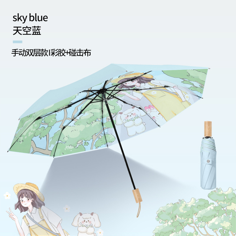 • 더블 레이어 수동 컬러 접착제 - 만화 소녀 하늘색