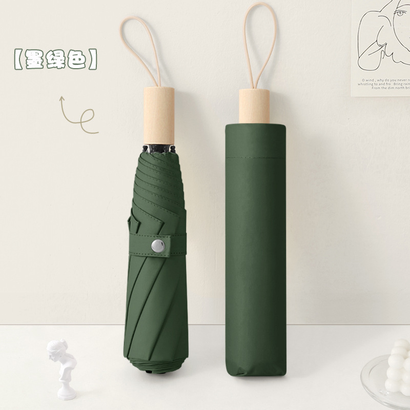 새로운 스타일 간단한 솔리드 우드 핸들 블랙 고무 햇빛 3 배 태양 우산 작은 신선한 우산 인쇄 로고 광고 우산