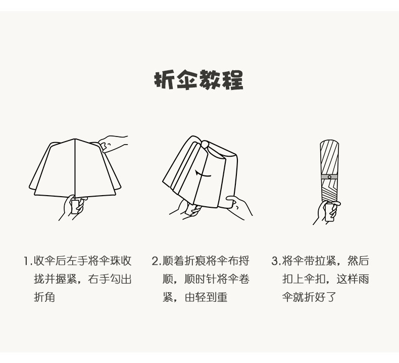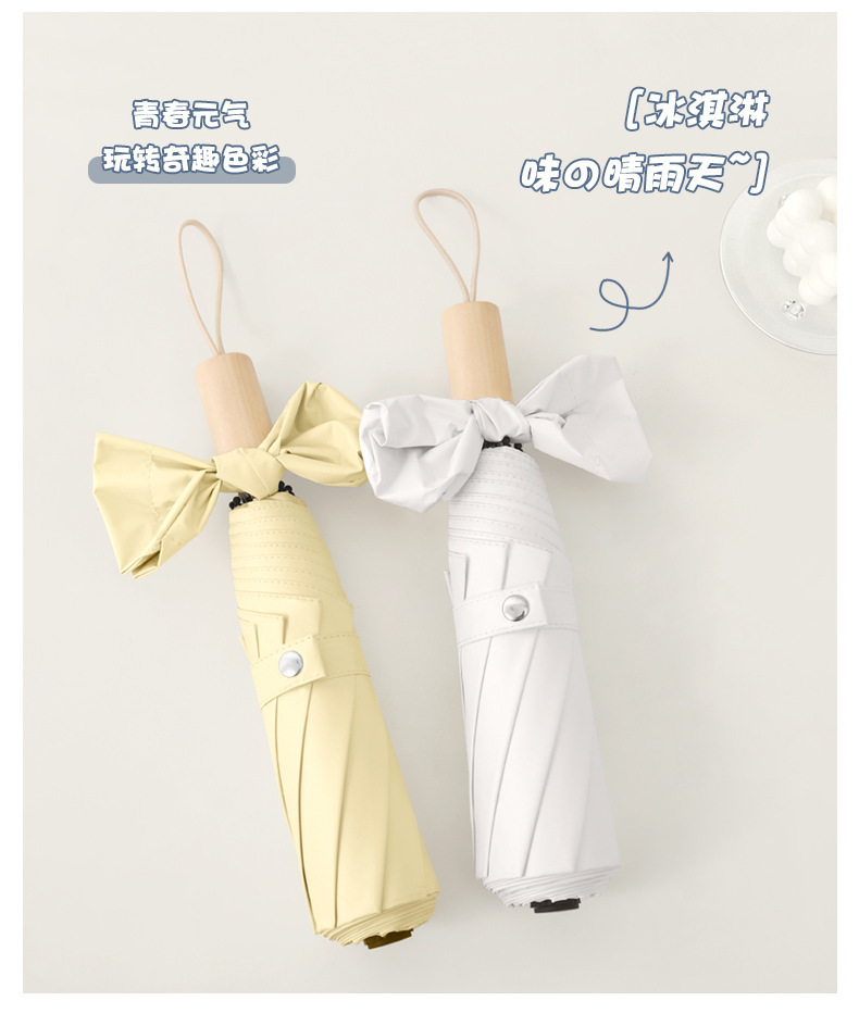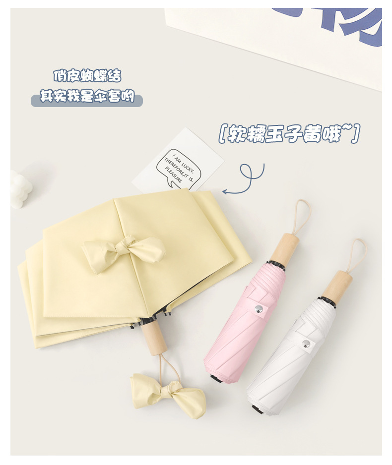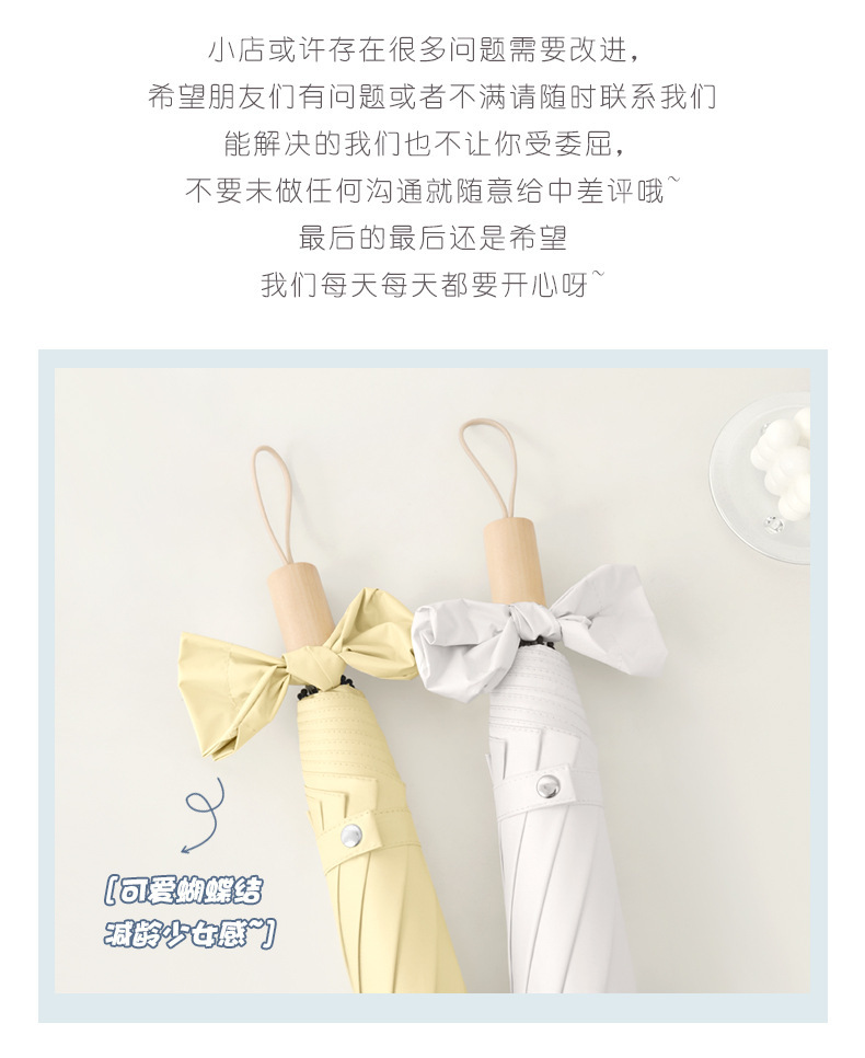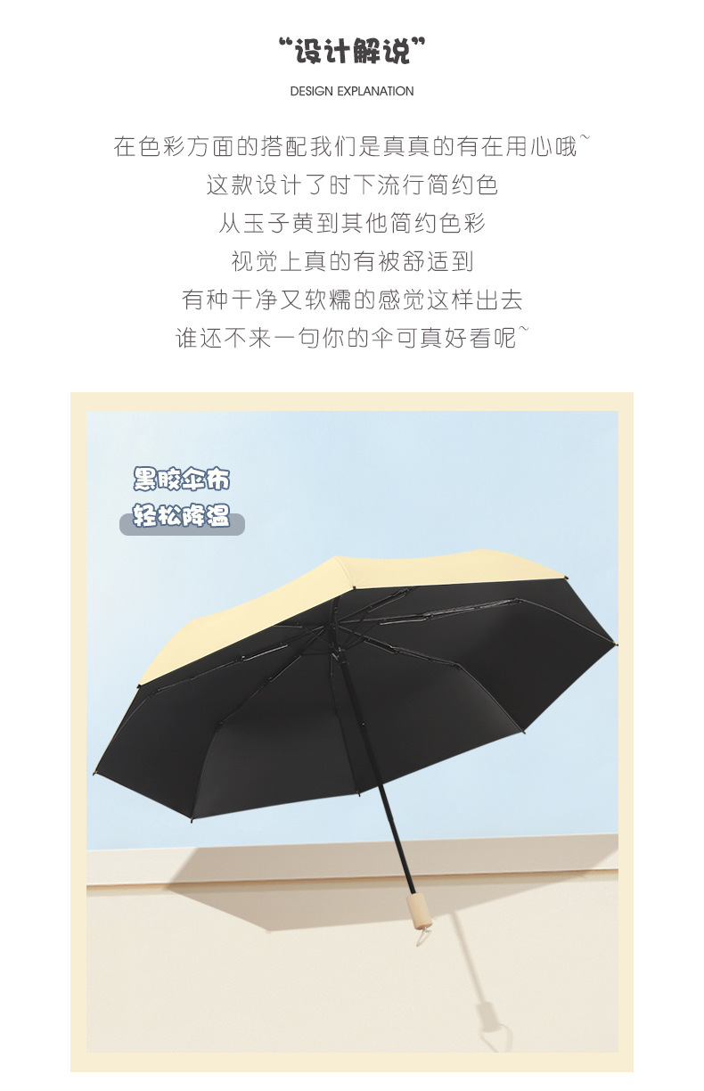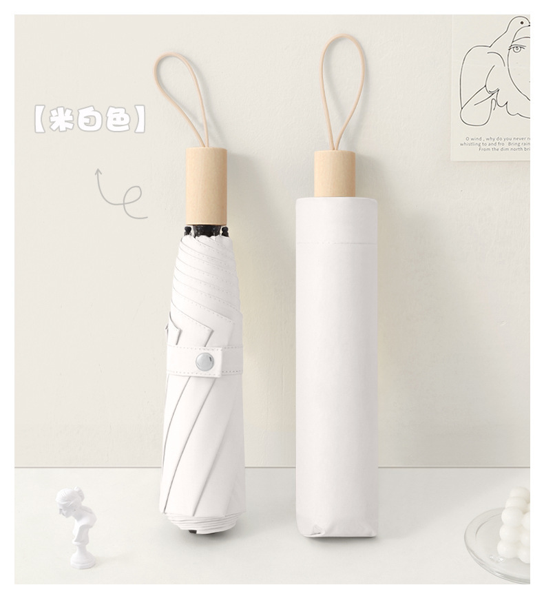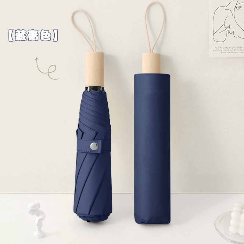 새로운 스타일 간단한 솔리드 우드 핸들 블랙 고무 햇빛 3 배 태양 우산 작은 신선한 우산 인쇄 로고 광고 우산스토어 가기