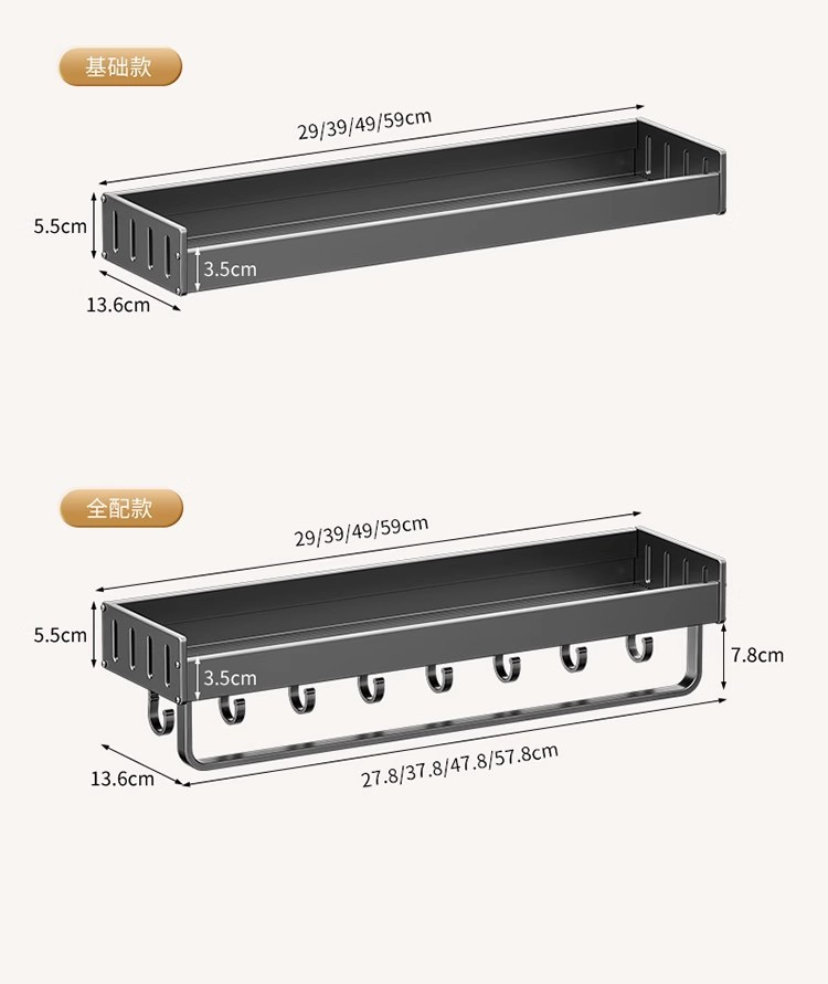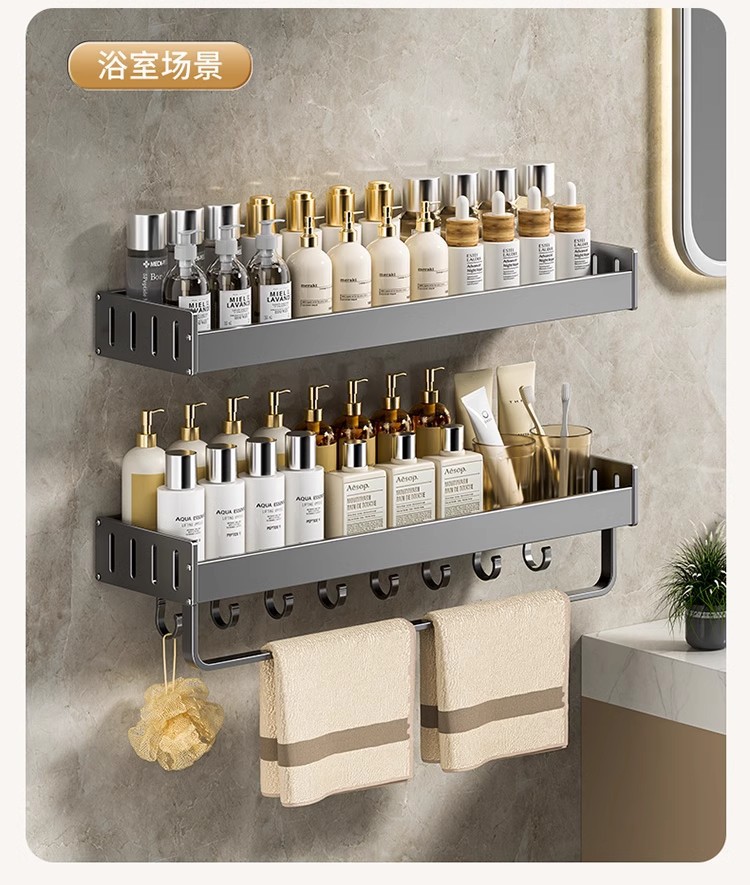 • [더블 레이어] 막대와 후크가 있는 수납선반 40cm