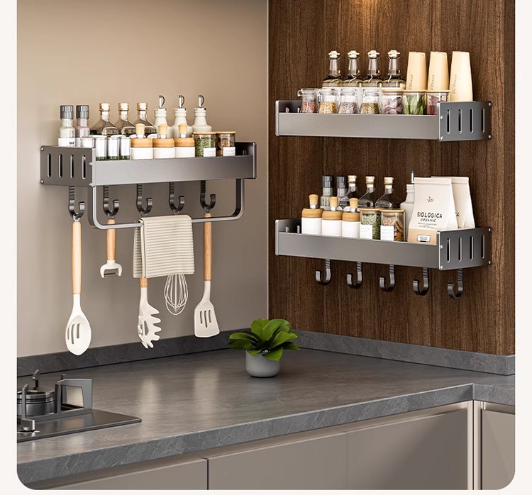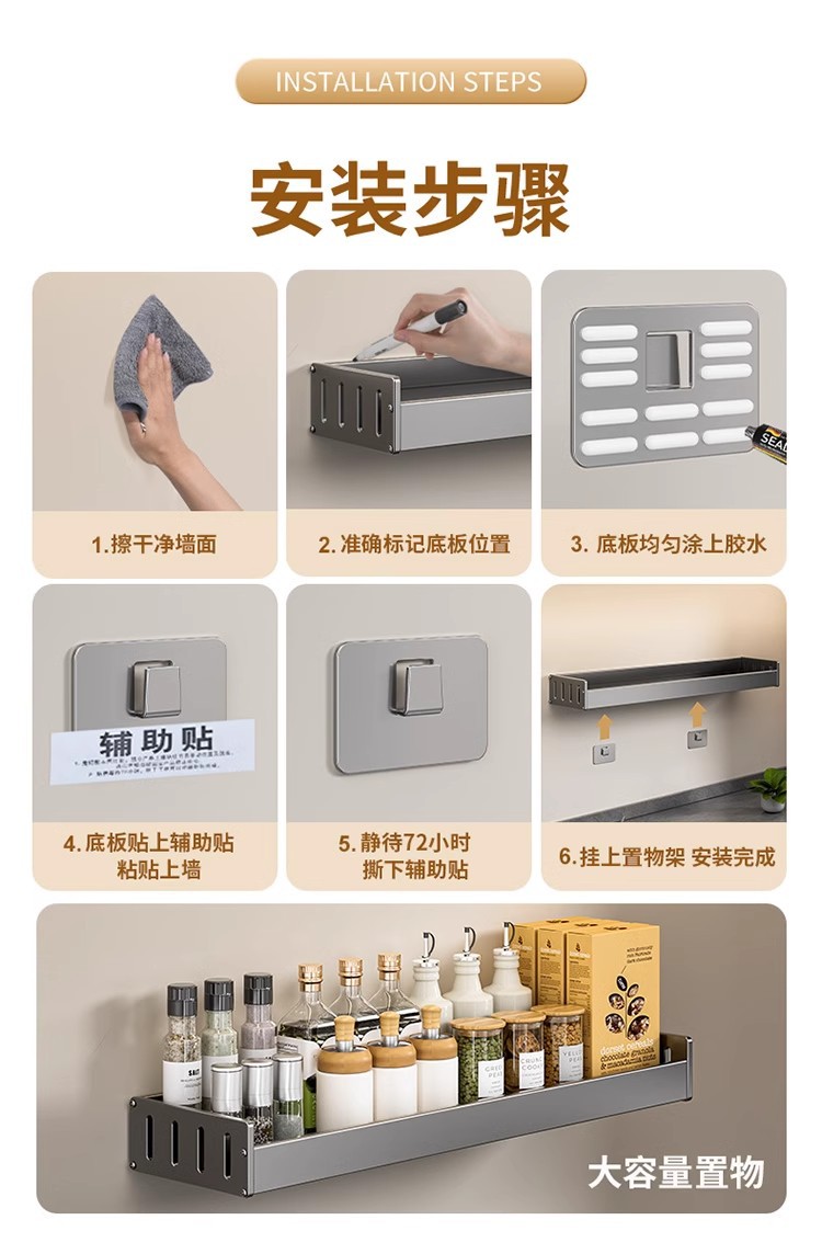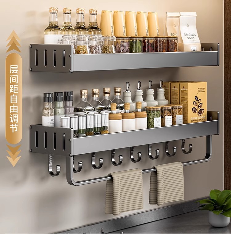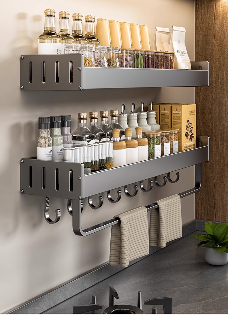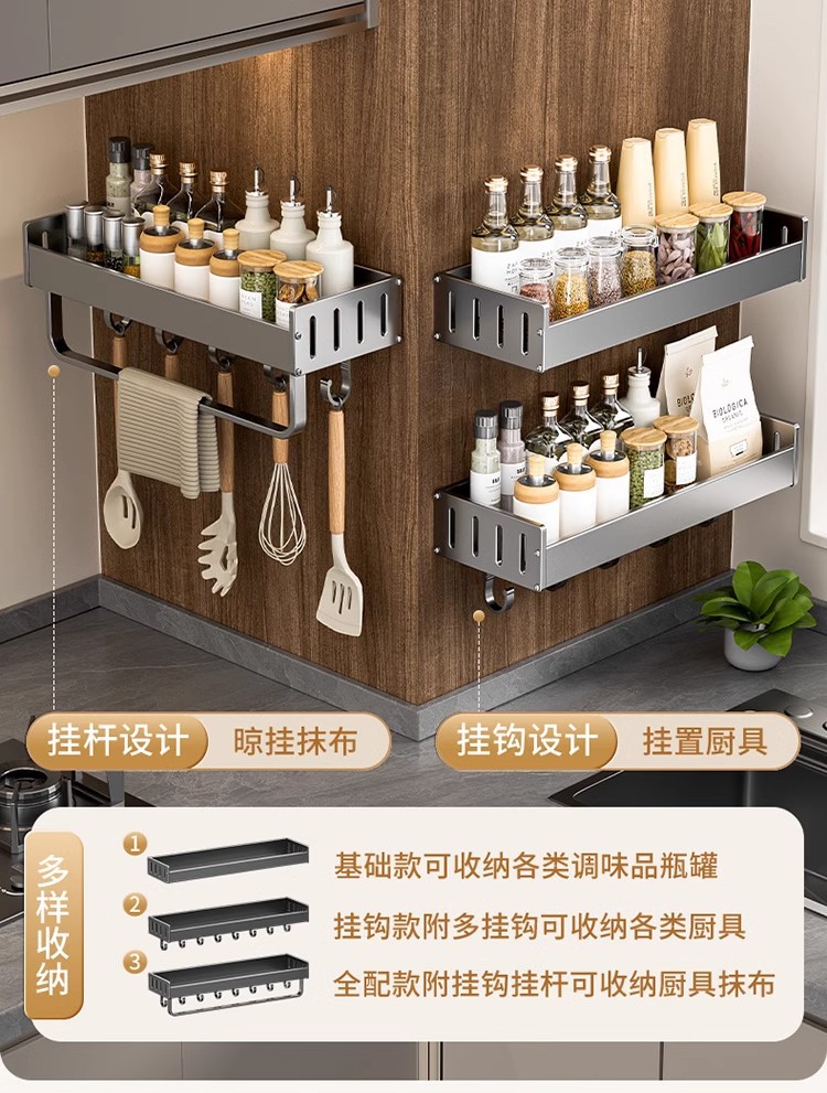 주방 스토리지 랙 펀치없는 벽 장착 조미료 랙 다기능 양념 벽 가정용 다층 스토리지 랙