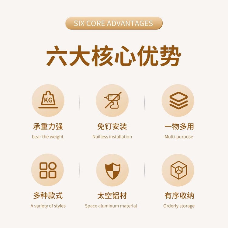 • [더블 레이어] 막대와 후크가 있는 수납선반 60cm