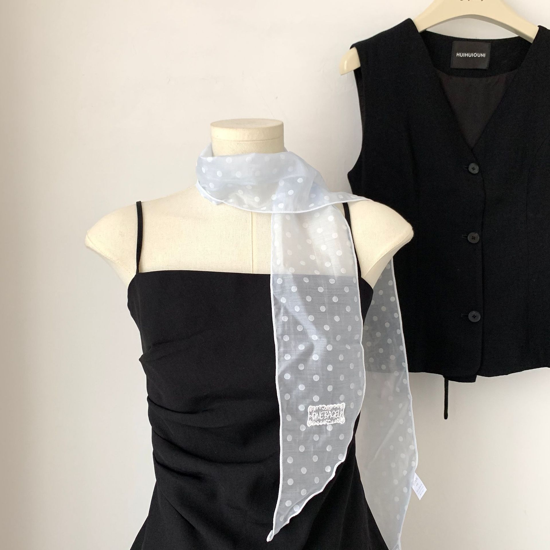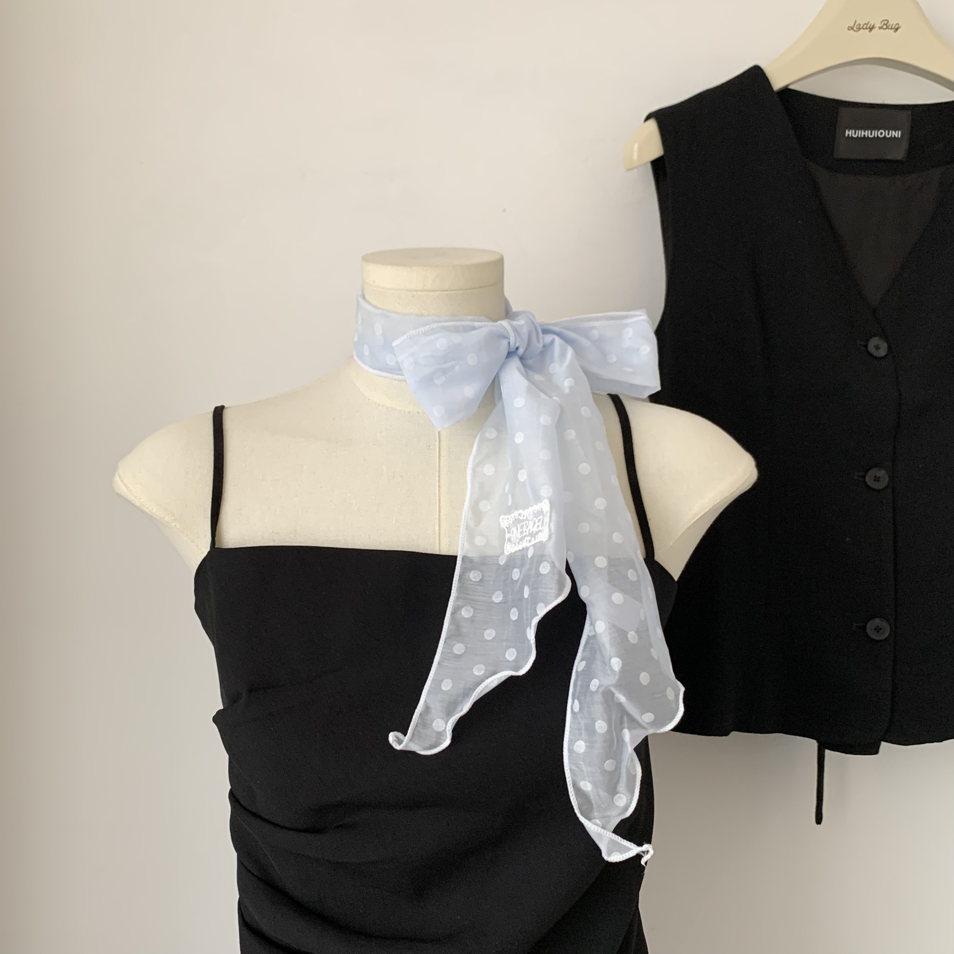 우아한 맘보 블루 실크 스카프 목 리본 목걸이 한국 스카프 얇은 좁은 긴 광장 스카프 목걸이 정리