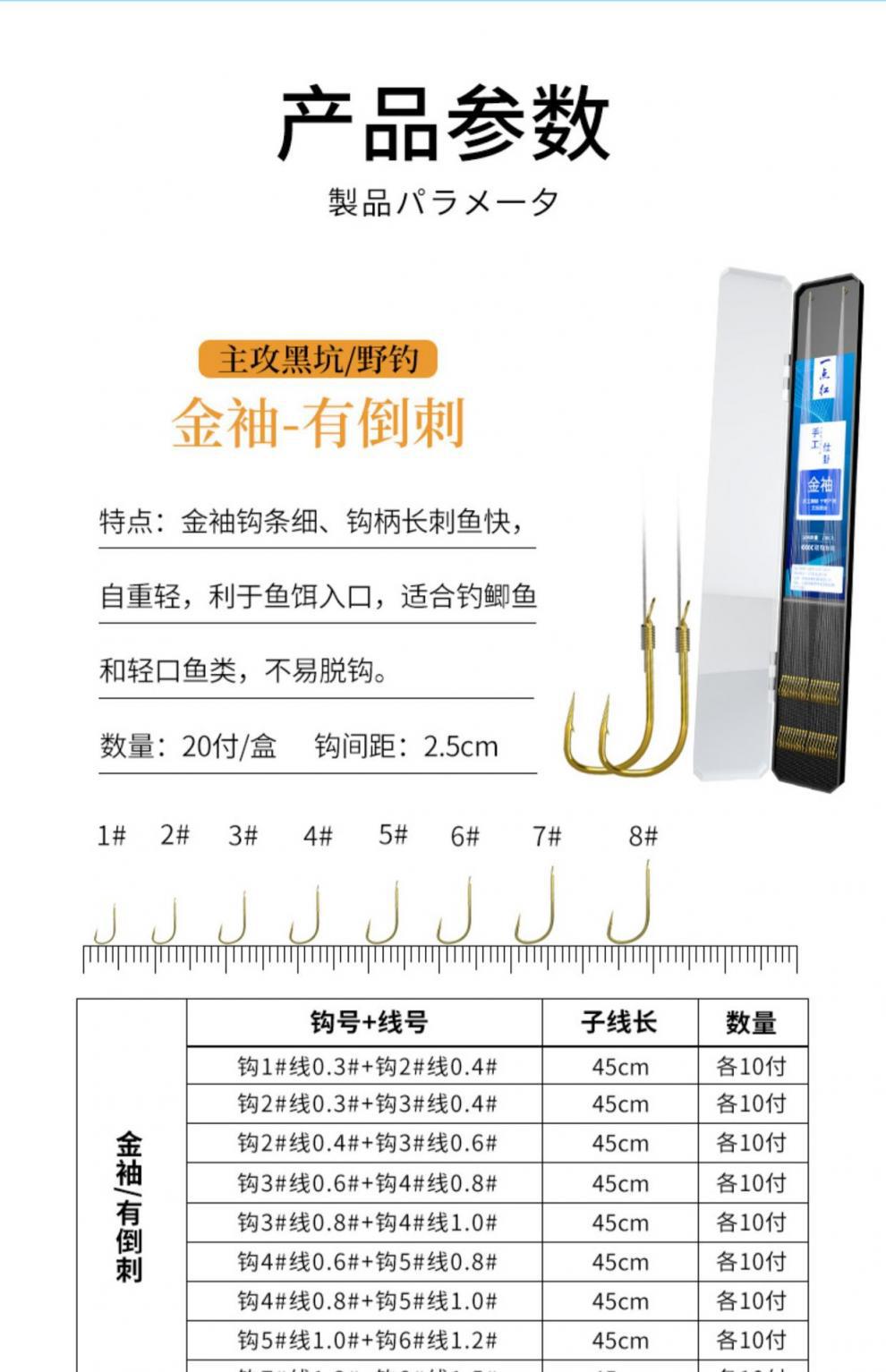 2024 새로운 수입 슬리브 후크 완성 서브 라인 더블 후크 골드 소매 붕어 러스트 후크 골드 쇼 묶인 피쉬 후크 자수 후크 쇼 후크스토어 가기