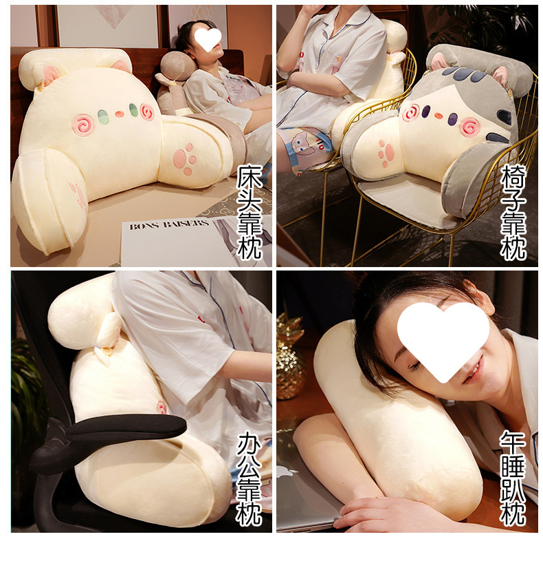 새로운 귀여운 쿠션 고양이 시리즈 허리 보호 삼각형 베개 사무실 다기능 조절 가능한 피부 친화적 인 통기성 등받이