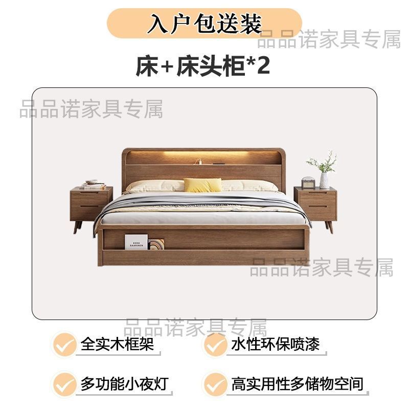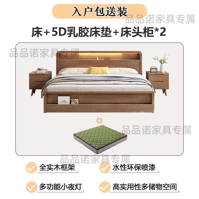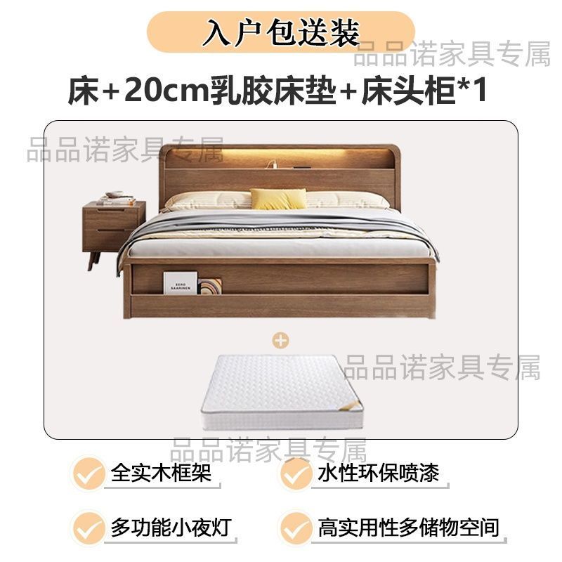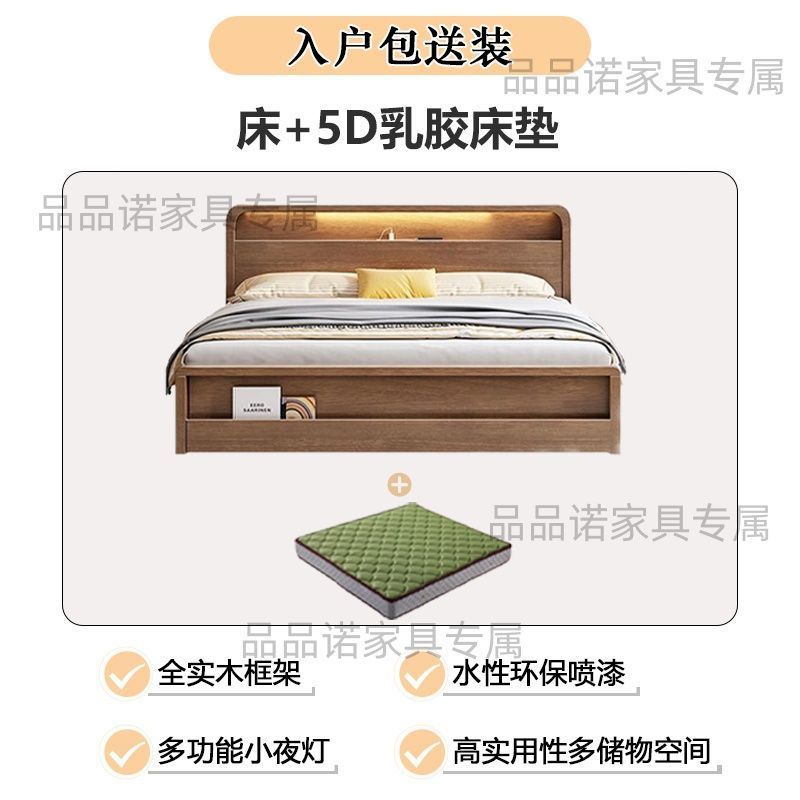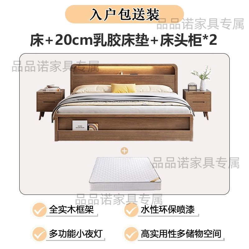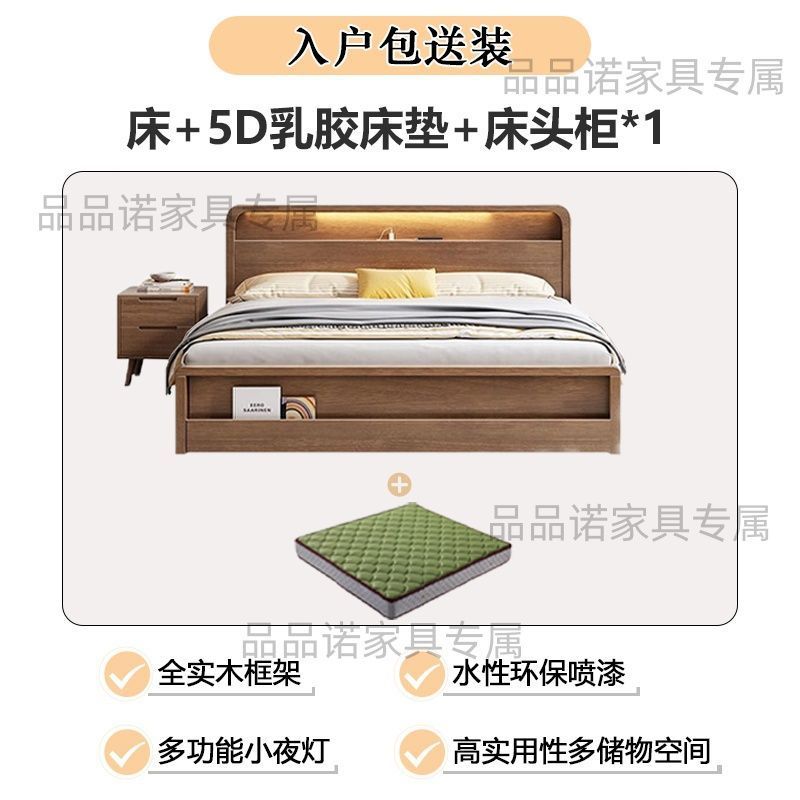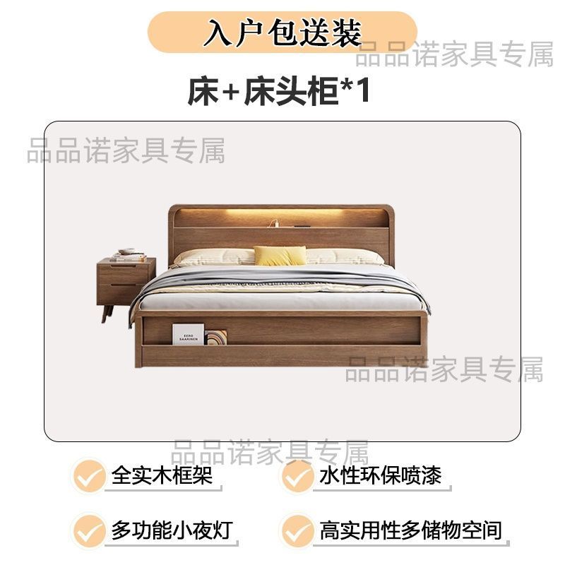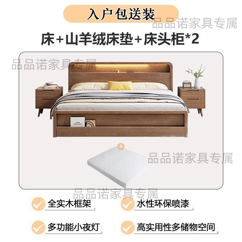 FLE 단단한 나무 침대 현대 간단한 북유럽 호두 색상 1.8m1.5m 싱글 더블 침대 마스터 침실 웨딩 침대 경제적 인 저장스토어 가기
