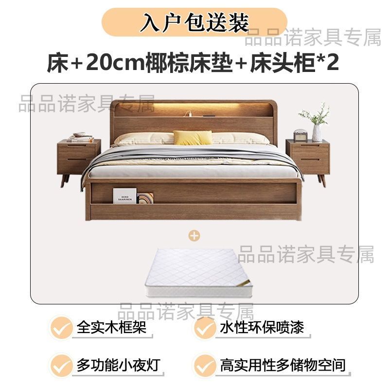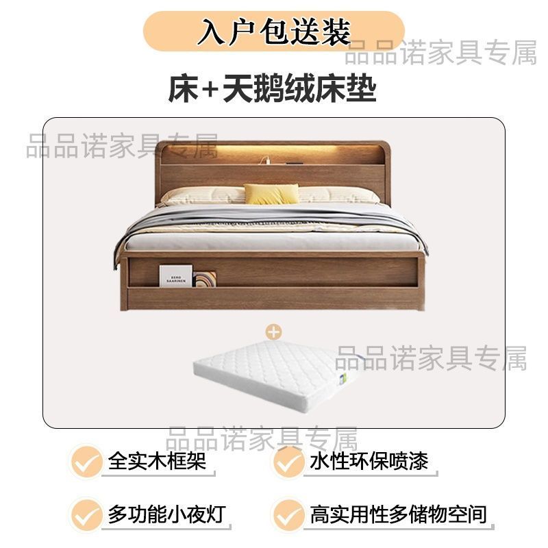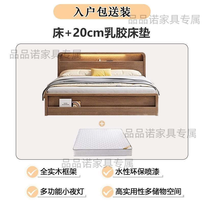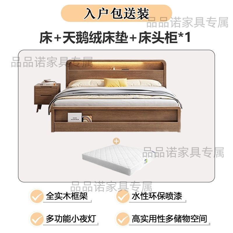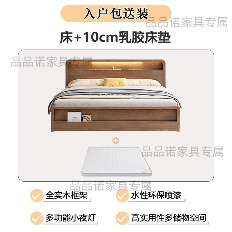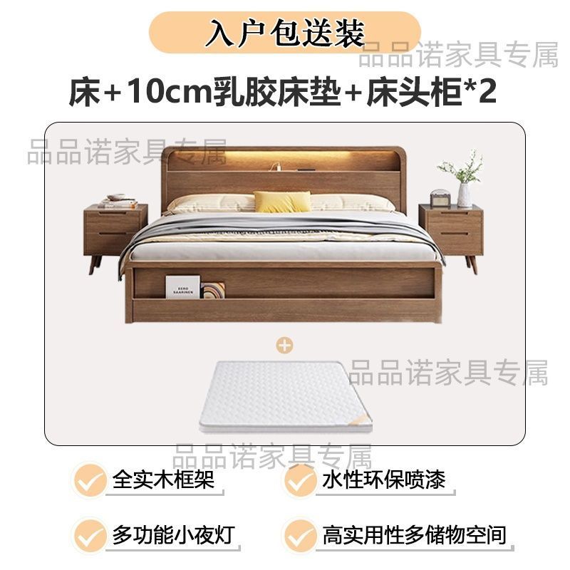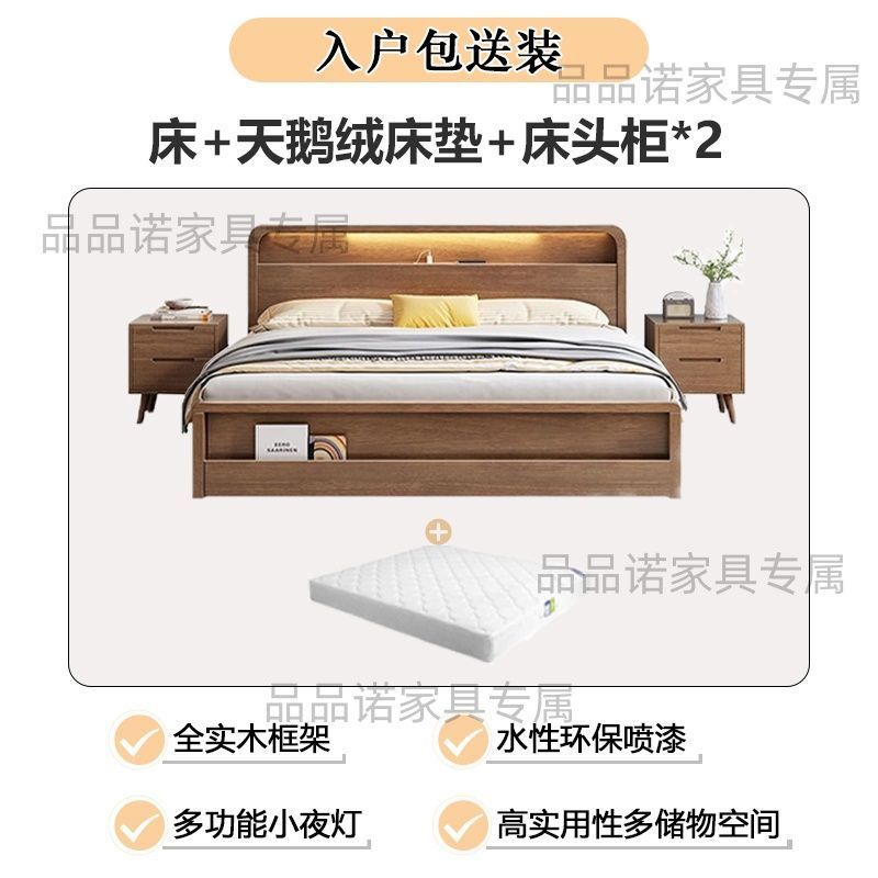 FLE 단단한 나무 침대 현대 간단한 북유럽 호두 색상 1.8m1.5m 싱글 더블 침대 마스터 침실 웨딩 침대 경제적 인 저장스토어 가기