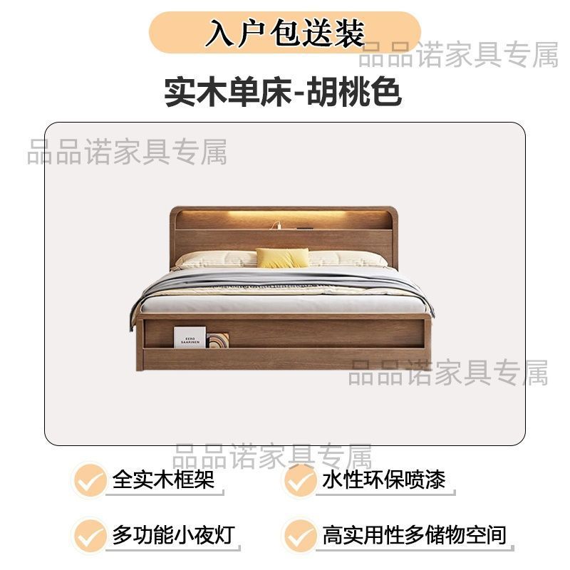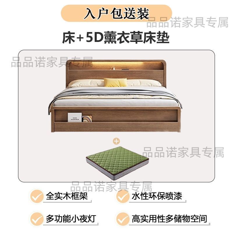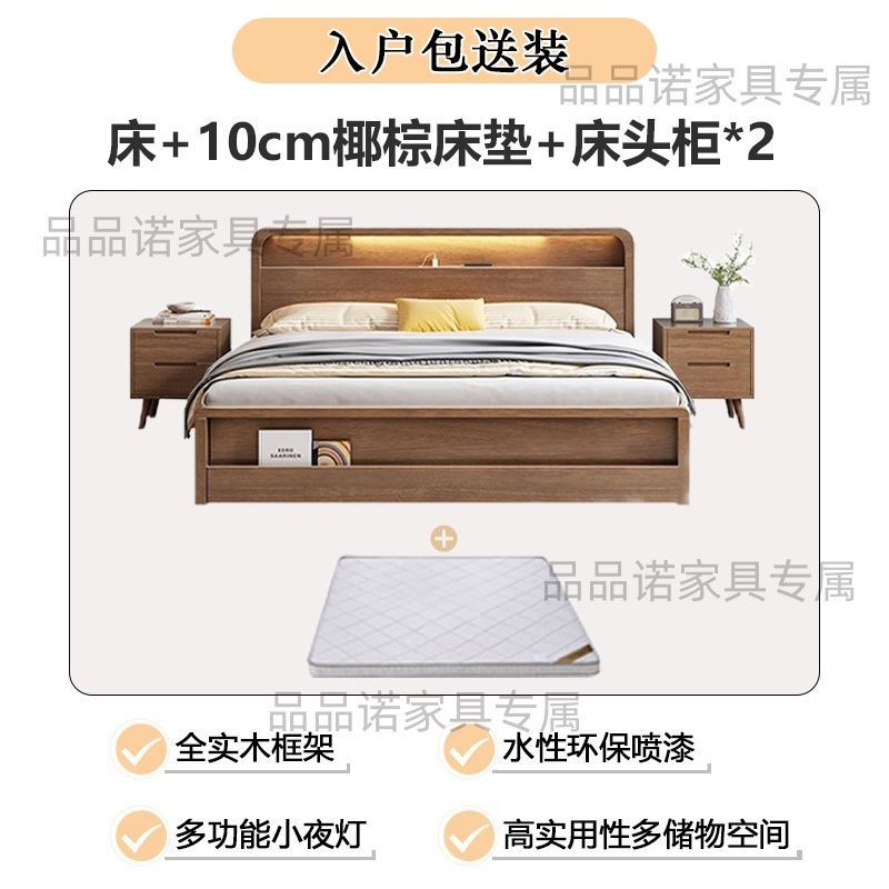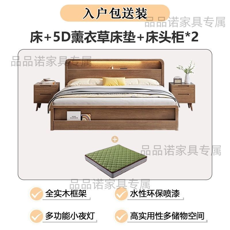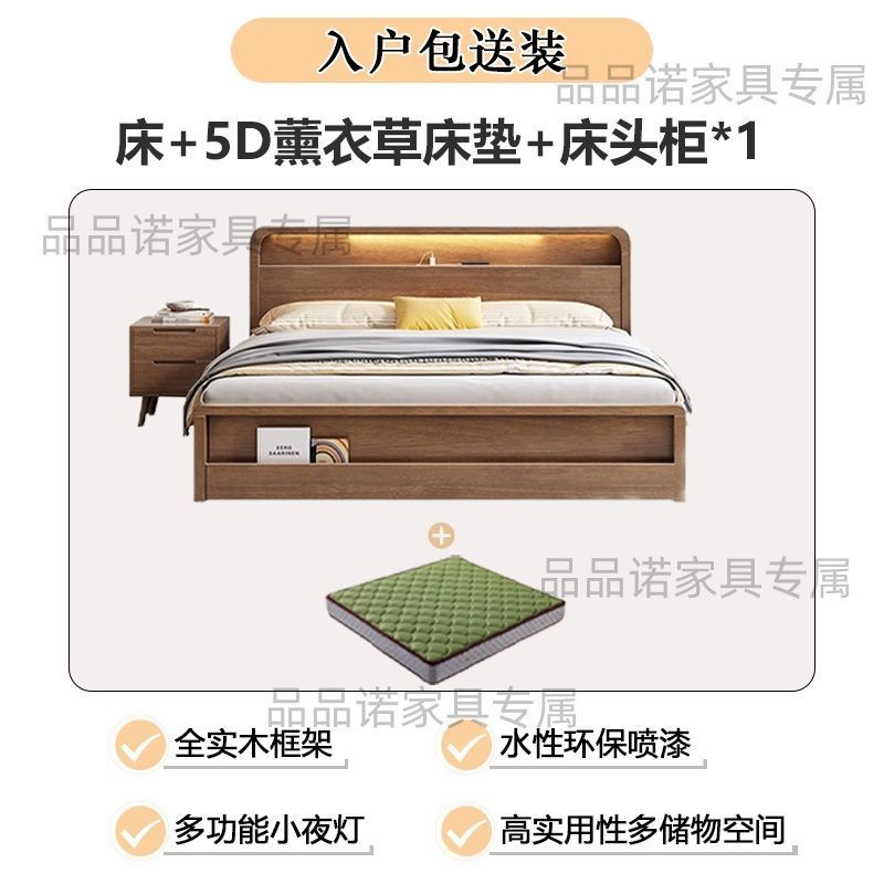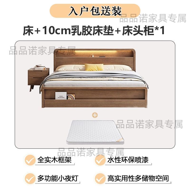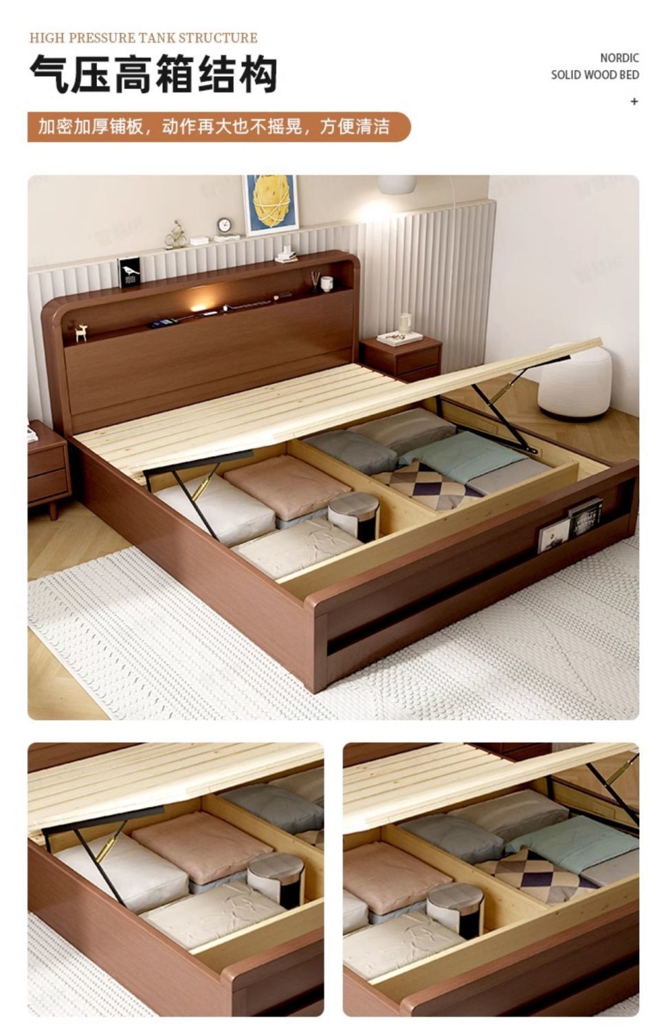 FLE 단단한 나무 침대 현대 간단한 북유럽 호두 색상 1.8m1.5m 싱글 더블 침대 마스터 침실 웨딩 침대 경제적 인 저장스토어 가기