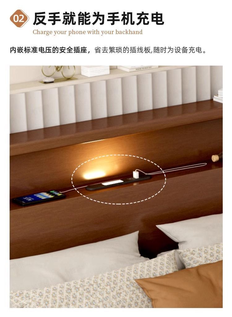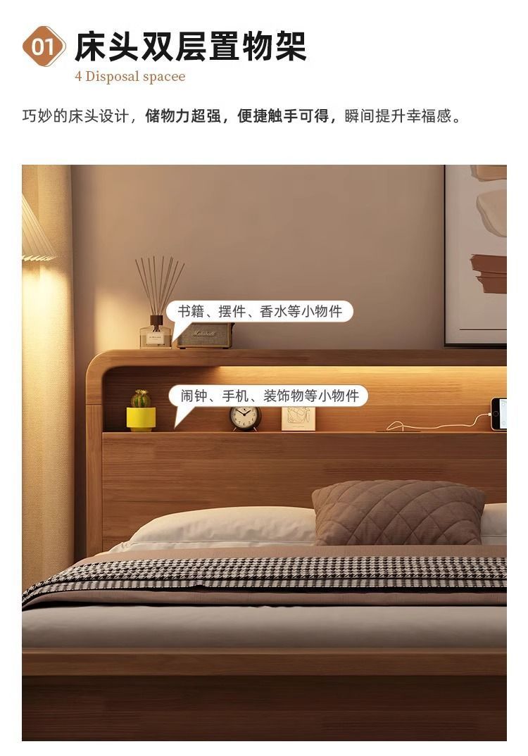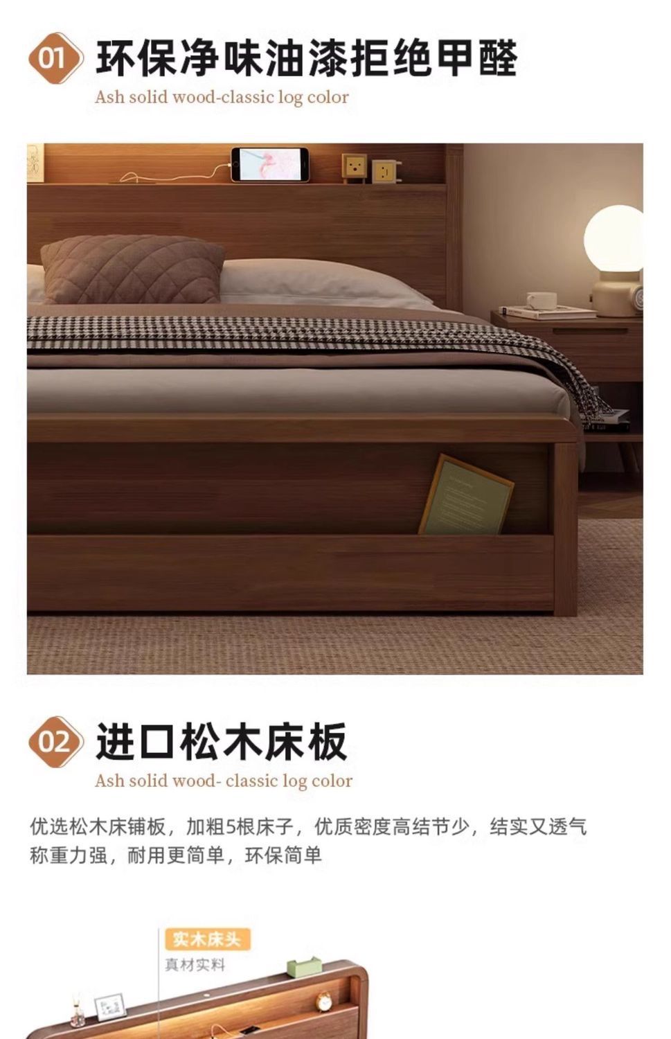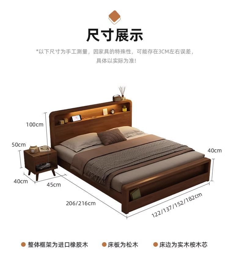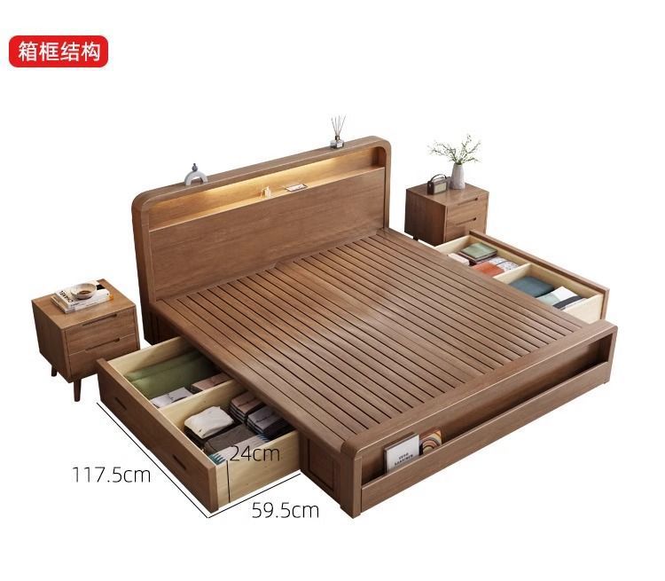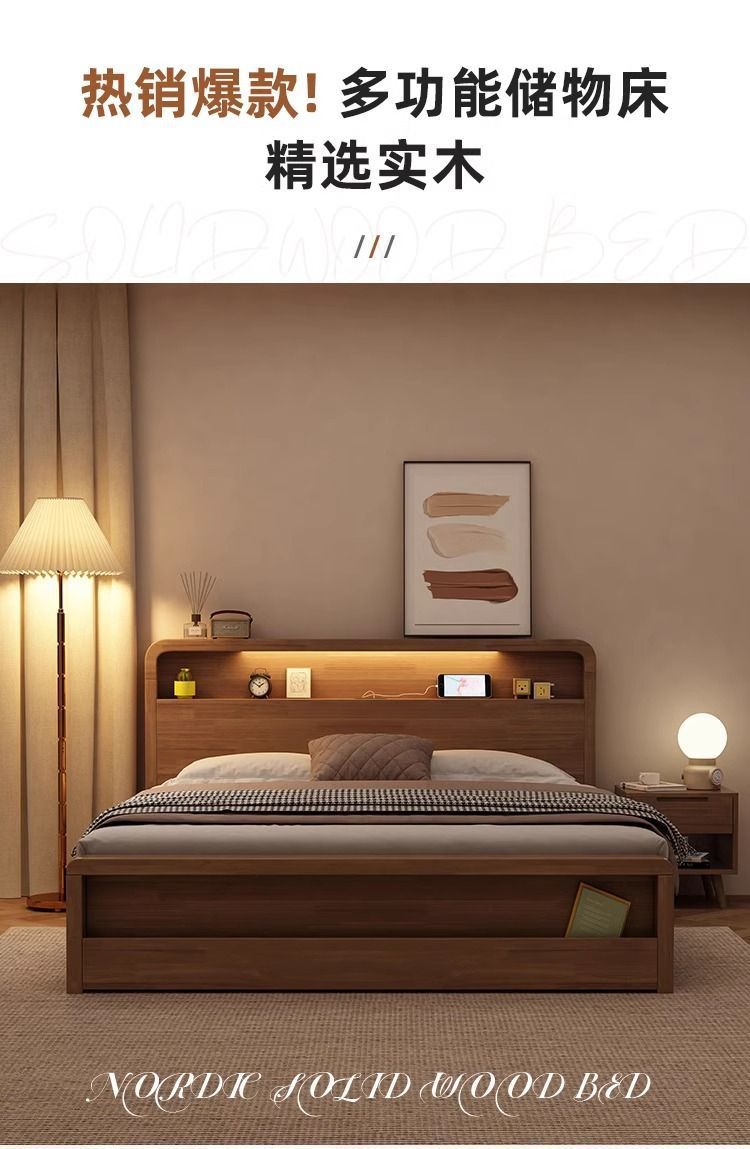 FLE 단단한 나무 침대 현대 간단한 북유럽 호두 색상 1.8m1.5m 싱글 더블 침대 마스터 침실 웨딩 침대 경제적 인 저장