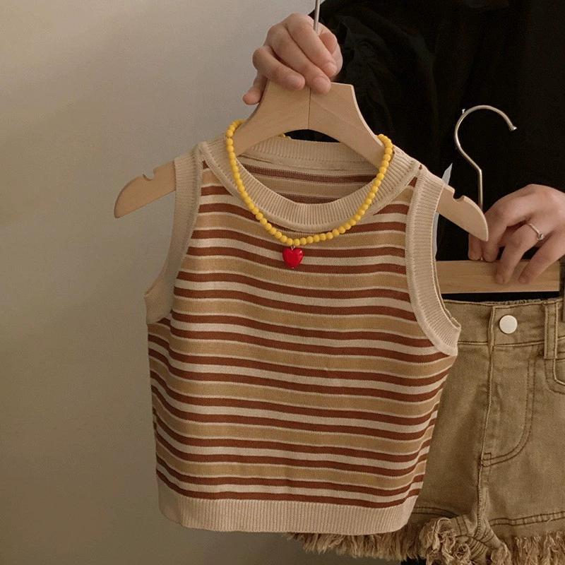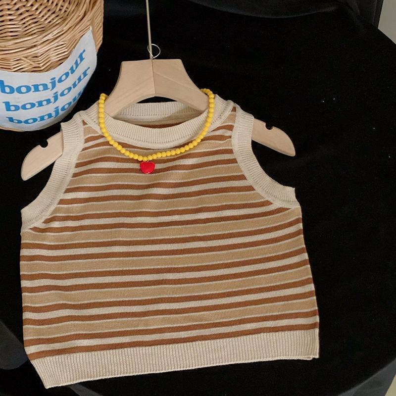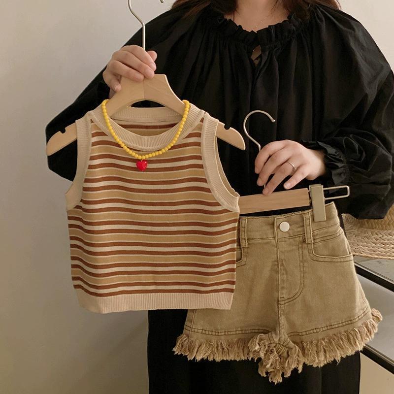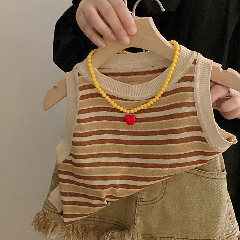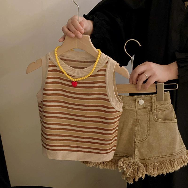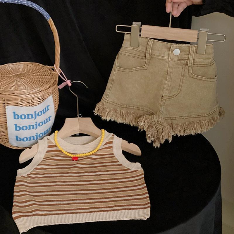 아동복 2025 새로운 여름 서양식 줄무늬 조끼 데님 반바지 세트 소녀 투피스 세트