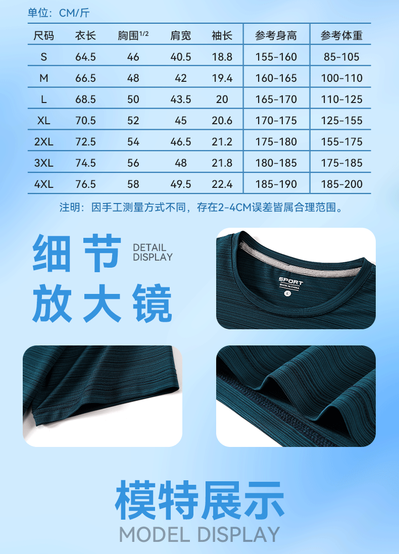 • 아이스 실크 속건 라운드 넥 홀 블루