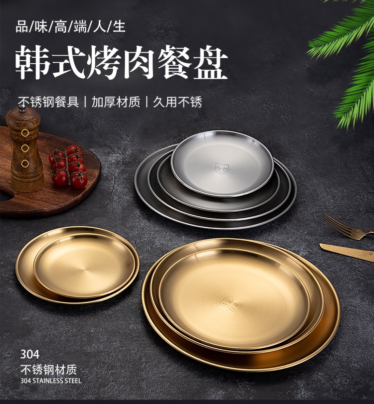 304 스테인리스 바베큐 접시, 한국식 원형 접시, 케이크 접시, 과일 접시, 야채 접시, 서빙 트레이, 가정용 뼈 접시스토어 가기