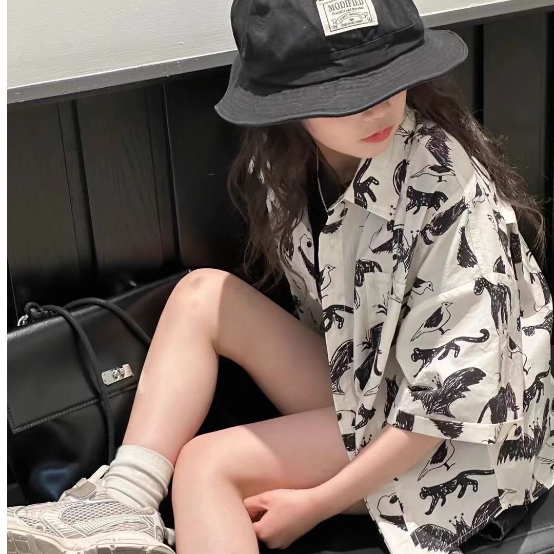 소년 소녀 짧은 소매 셔츠 2025 여름 새로운 스타일 어린이 탑 한국 동물 인쇄 짧은 소매 셔츠