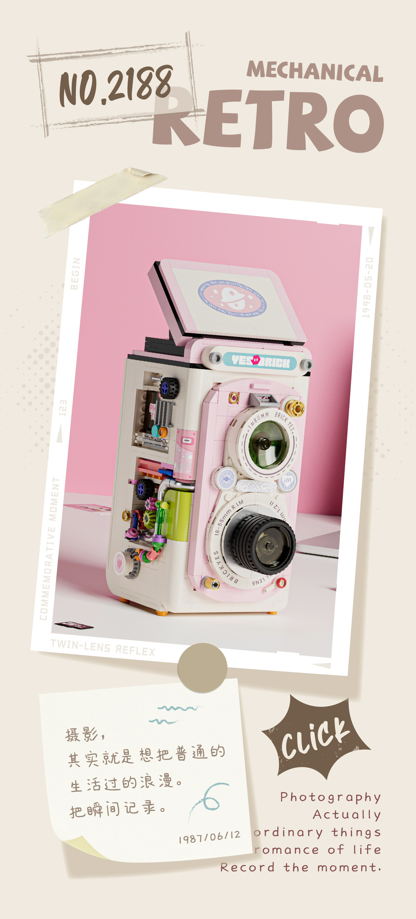 벽돌 또한 2188-89 레트로 카메라 미니 입자 어셈블리 어린이 소년 소녀 빌딩 블록 장난감 장식품 선물