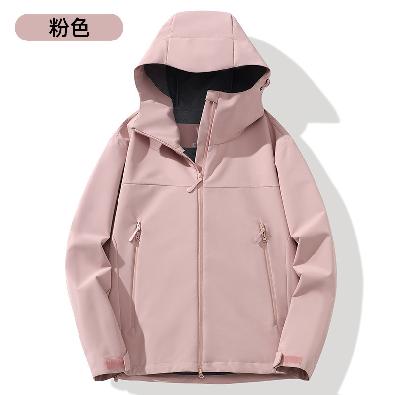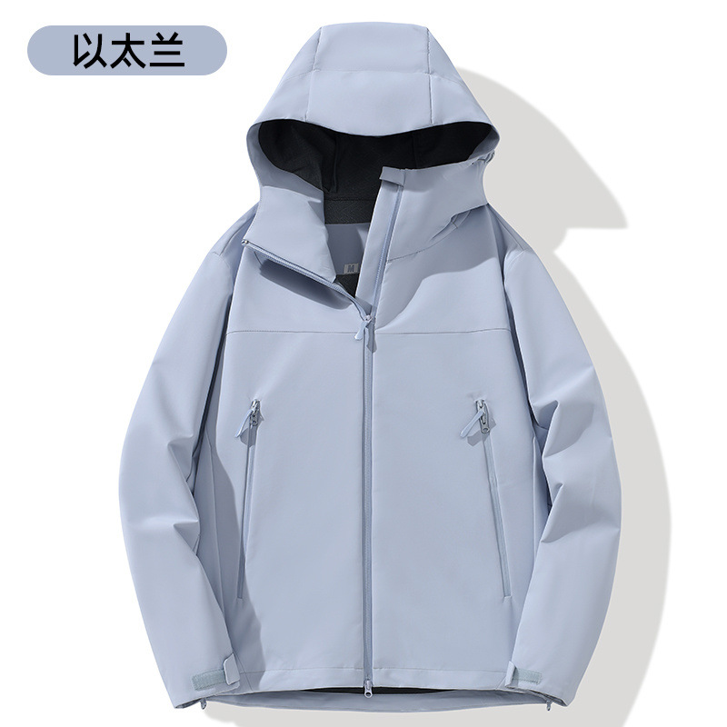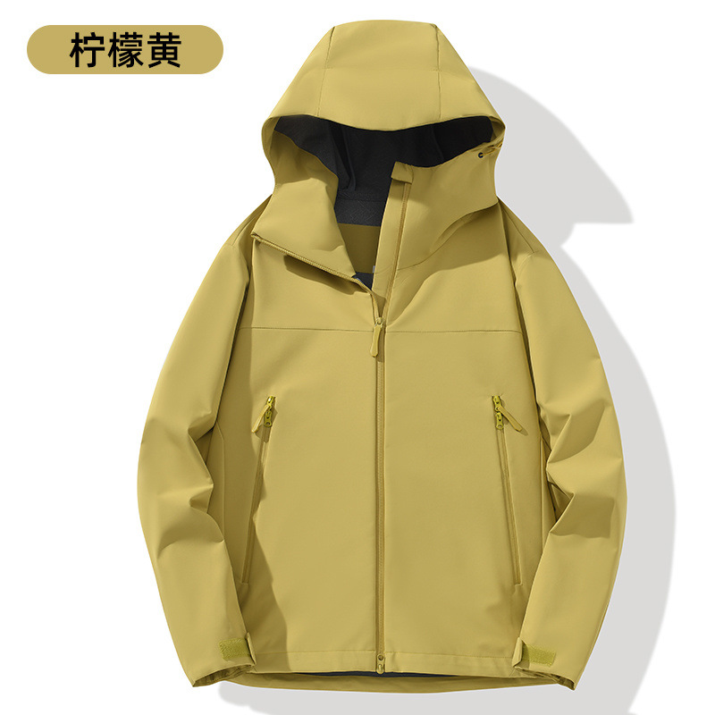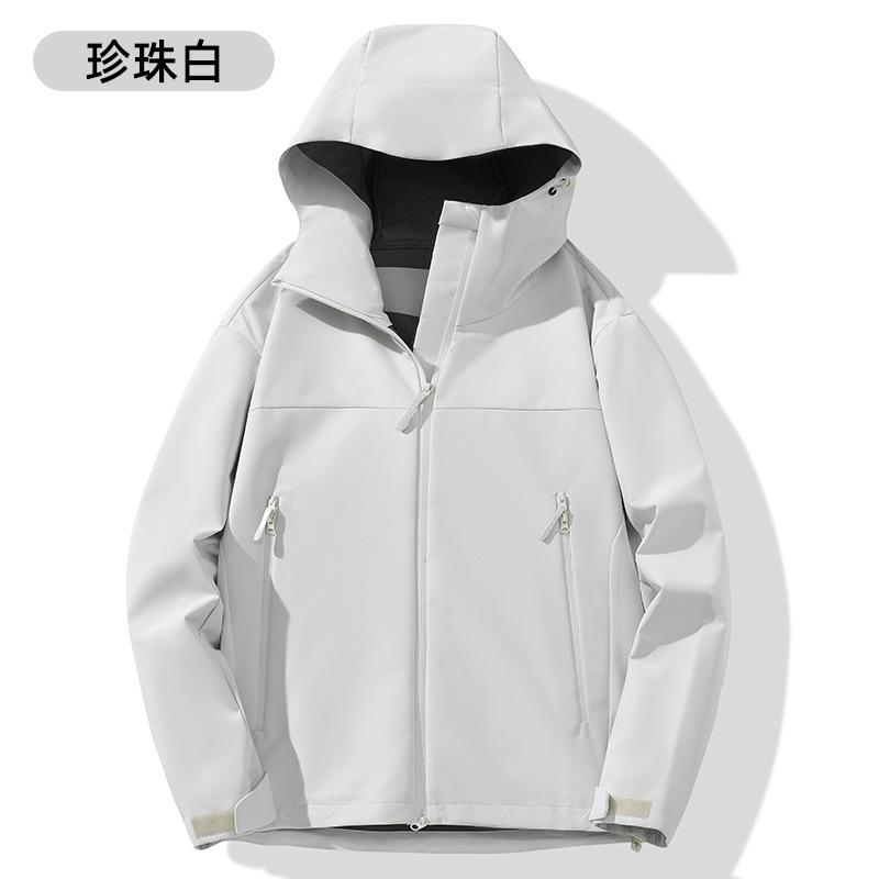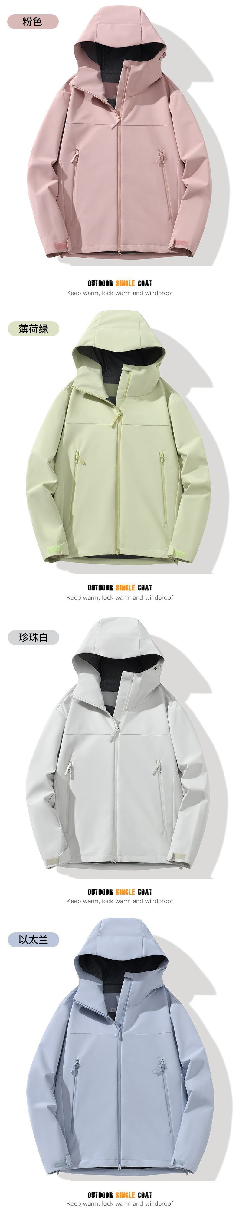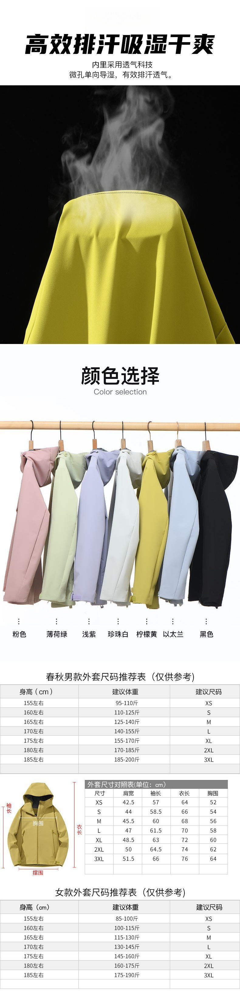 봄과 여름 새로운 도착 남자 야외 스포츠 코트 얇은 싱글 레이어 방풍 등산 세트 여성용 후드 코트 재킷