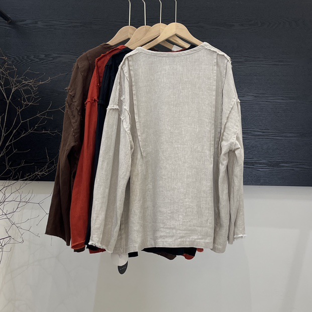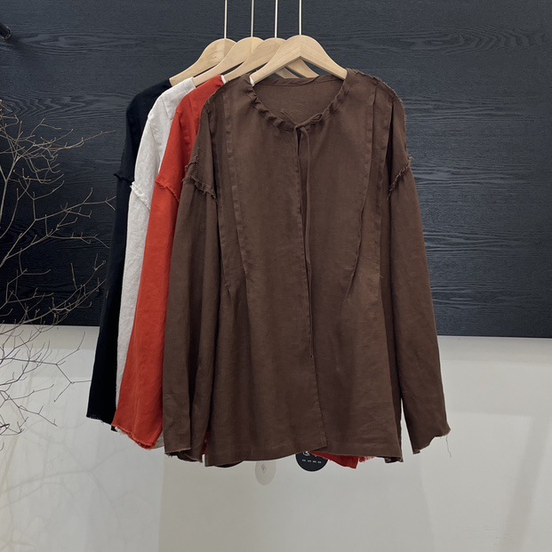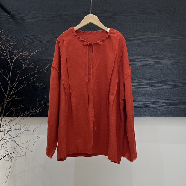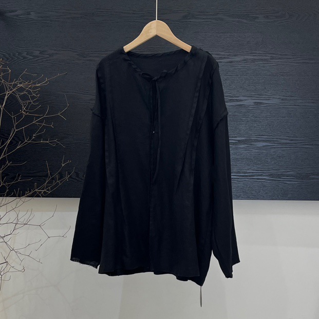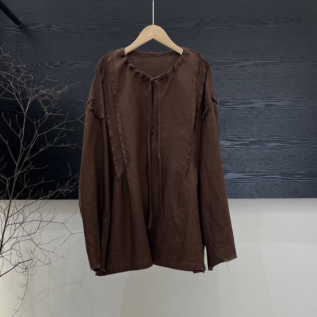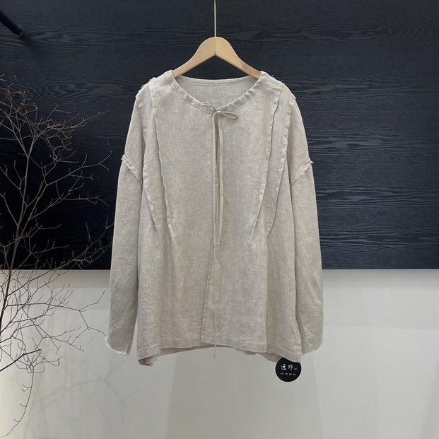 랩 디자인 셔츠 여성의 2025 봄 새로운 레트로 느슨한 라운드 넥 레이스 업 풀오버 셔츠스토어 가기
