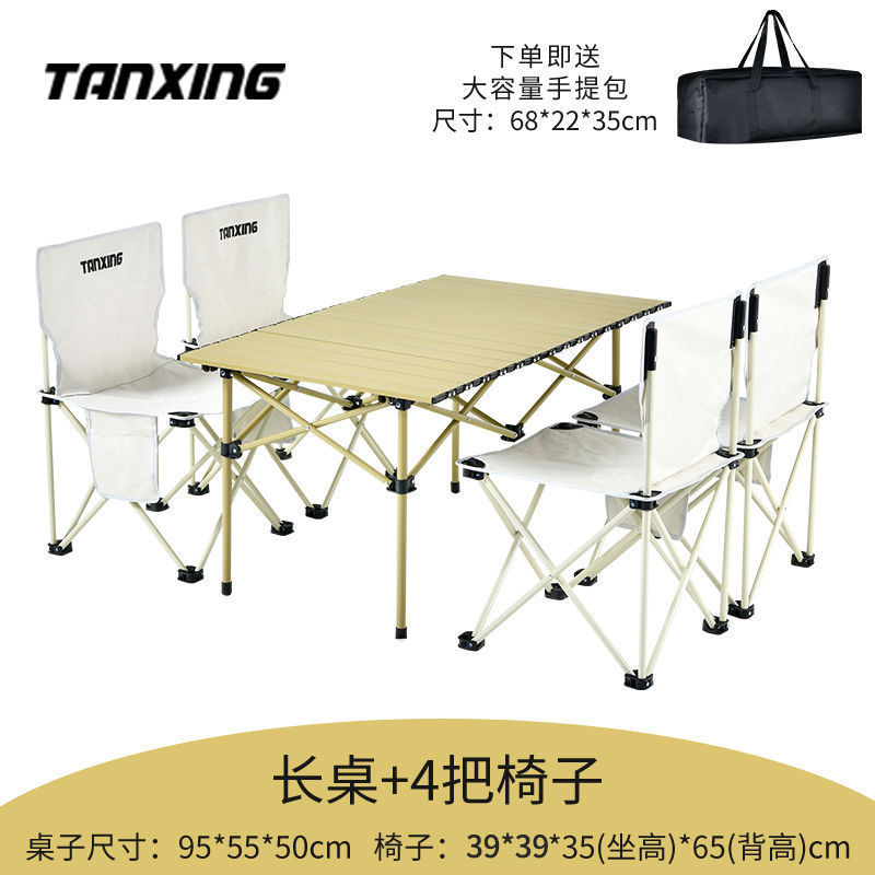 야외 접이식 테이블과 의자 휴대용 자동차 자율 주행 캠핑 테이블 피크닉 테이블 달걀 롤 테이블과 의자 세트 노출 된 금속 없음스토어 가기