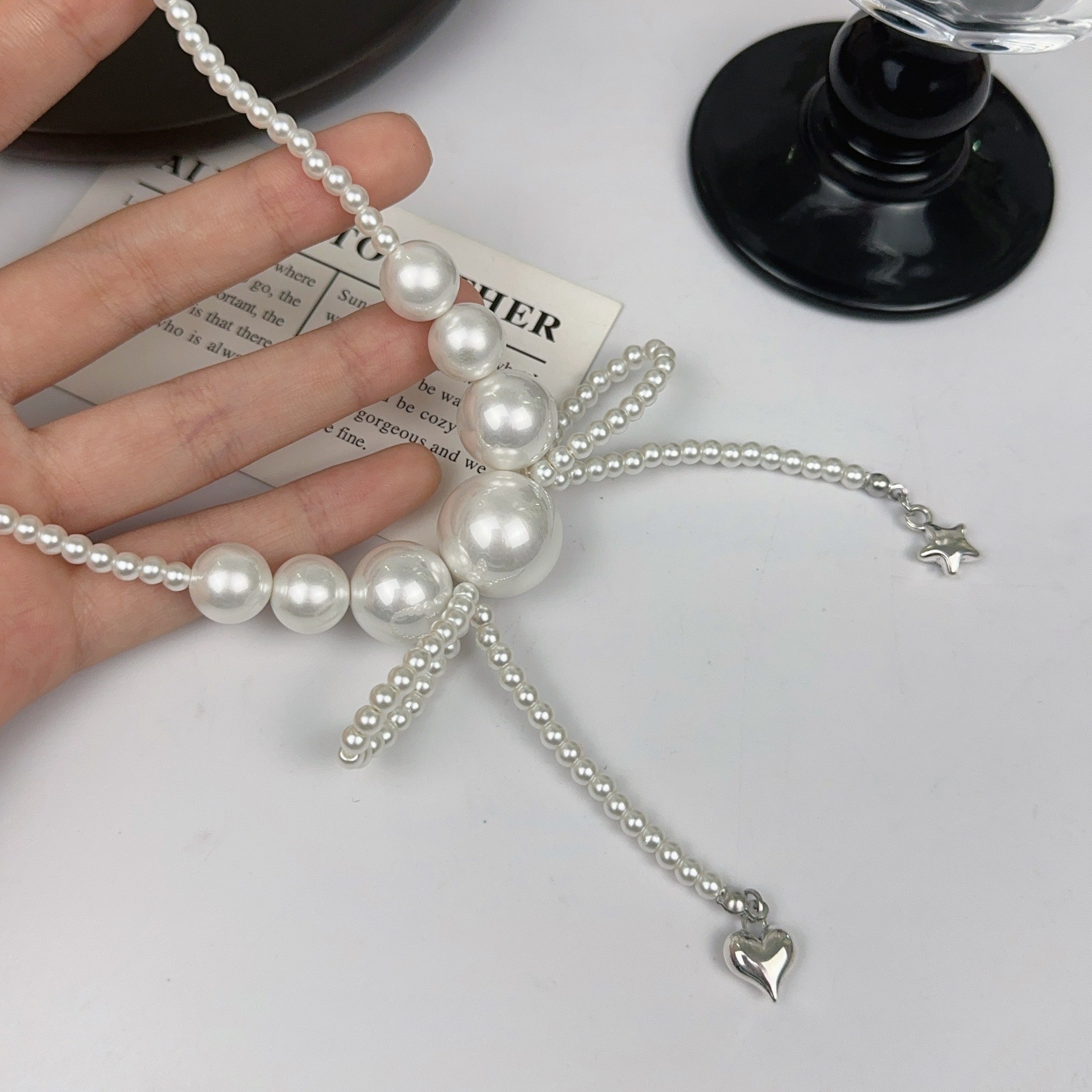 • 여성용 대형 진주 목걸이 긴 술 나비