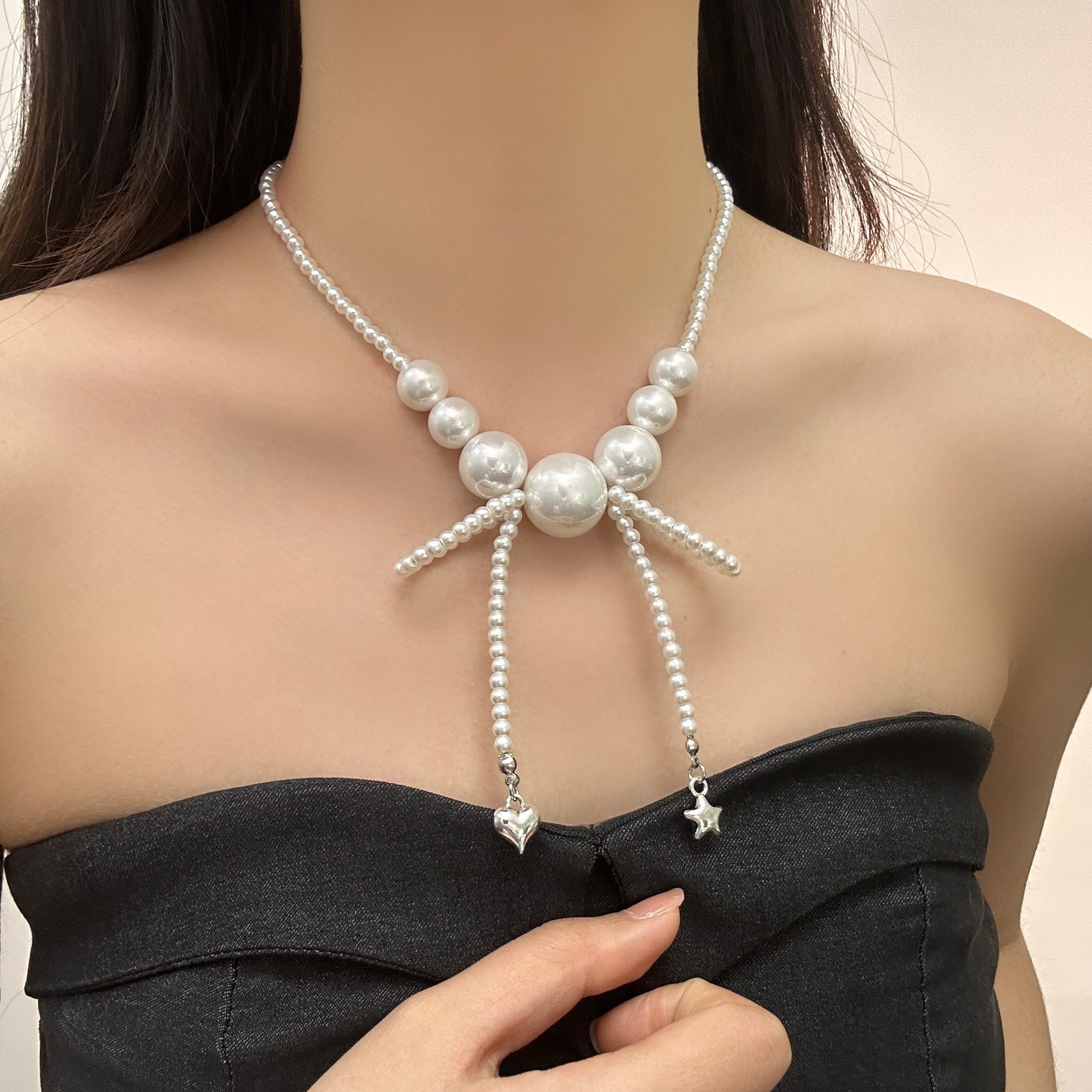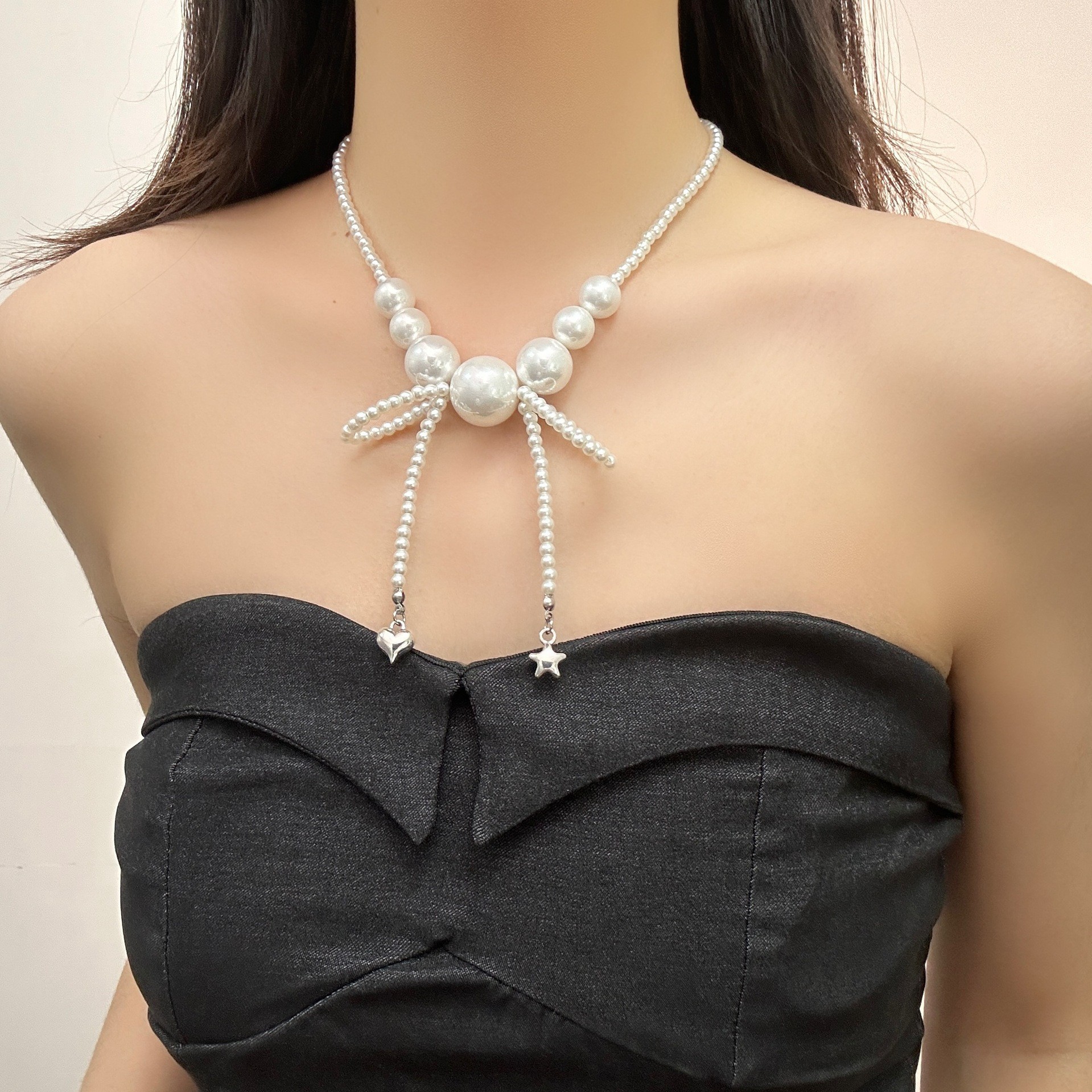 과장된 큰 둥근 진주 활 목걸이 쇄골 체인 여성 구슬 패션 틈새 하이 엔드 목걸이 술 액세서리스토어 가기