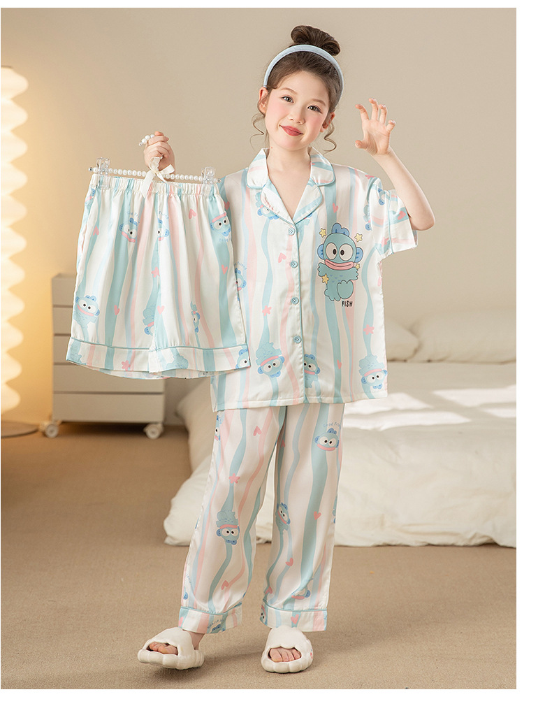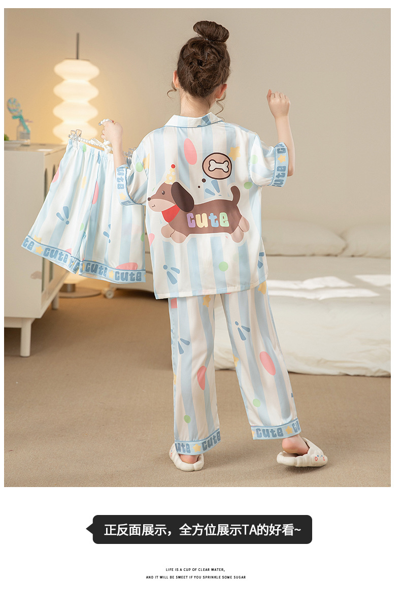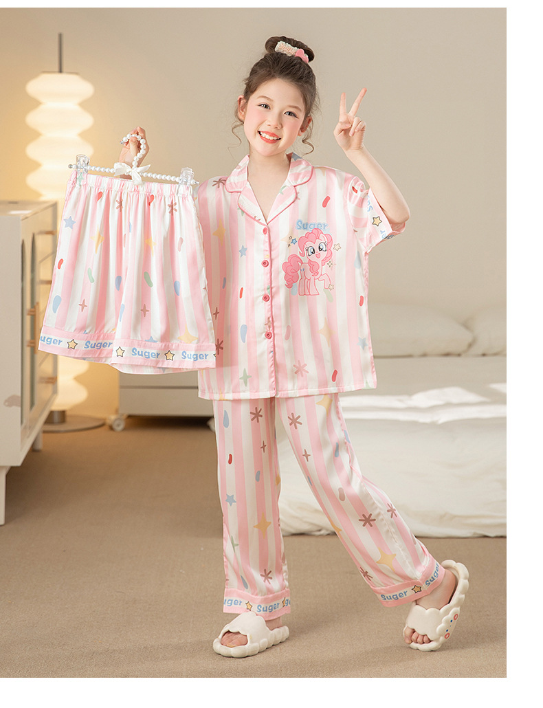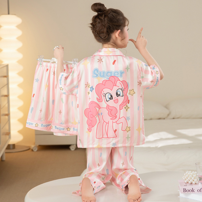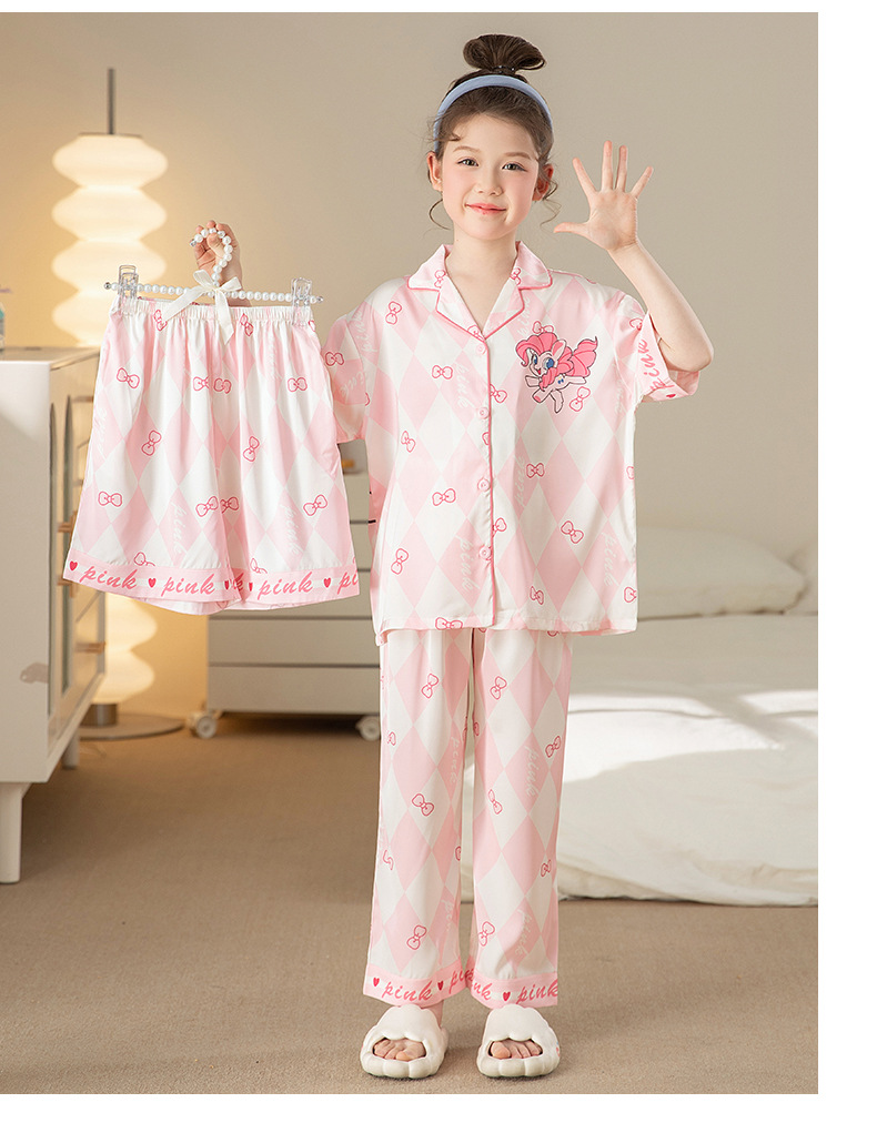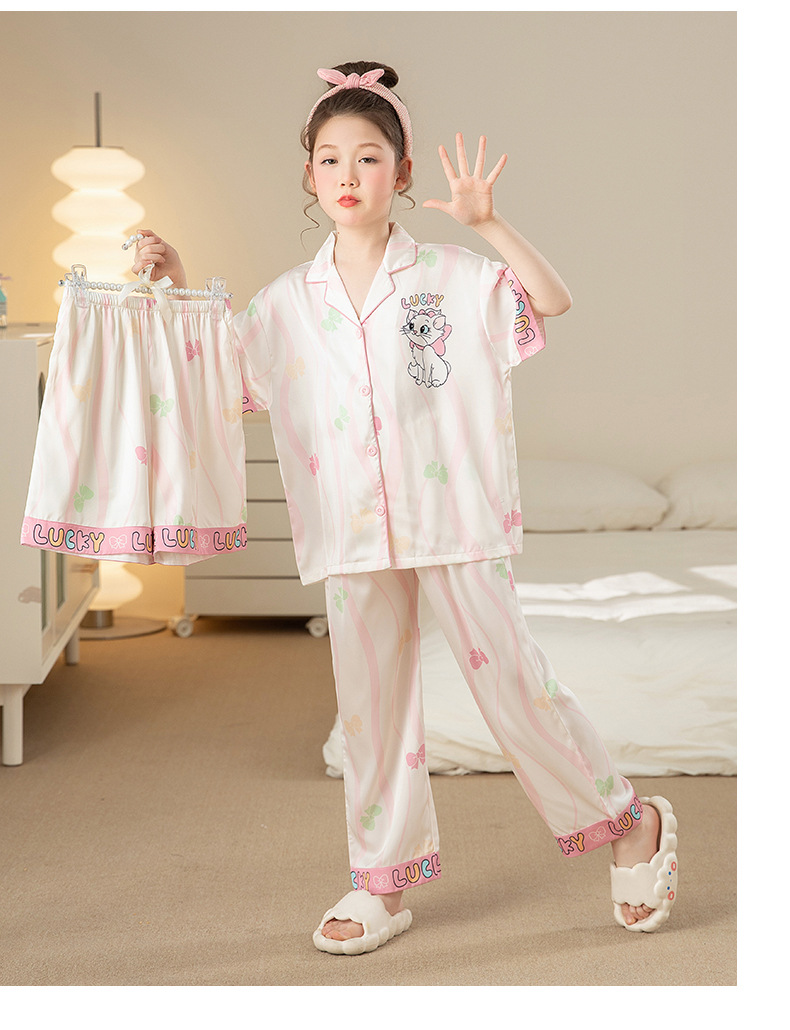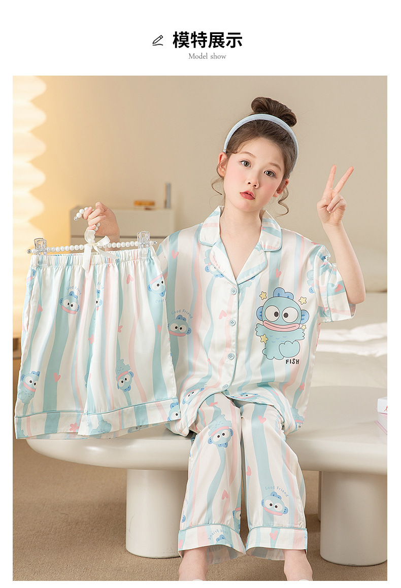 잠옷 어린이 여름 아이스 실크 소녀 3 종 세트 얇은 반팔 여름 소녀 서양식 아기 홈 의류 세트