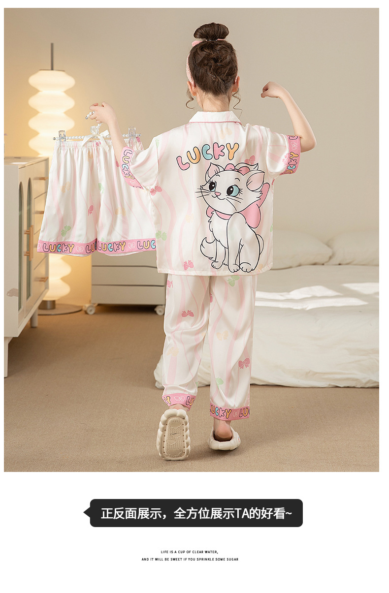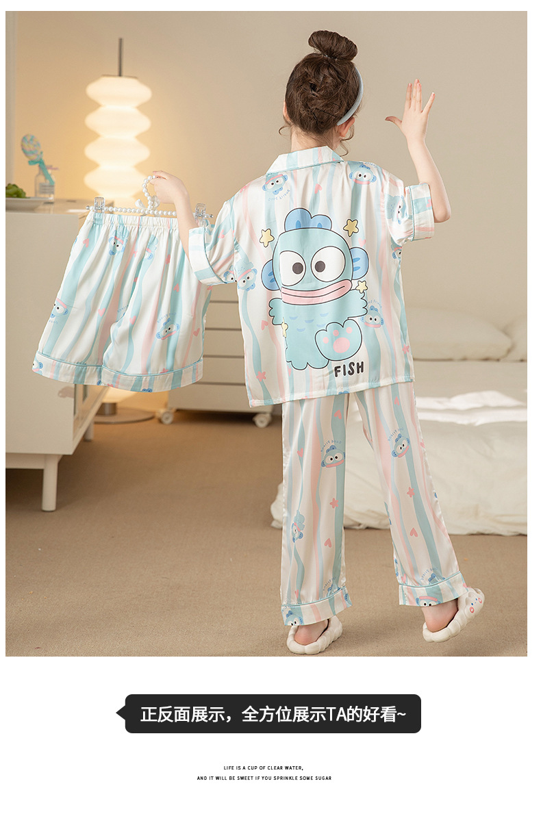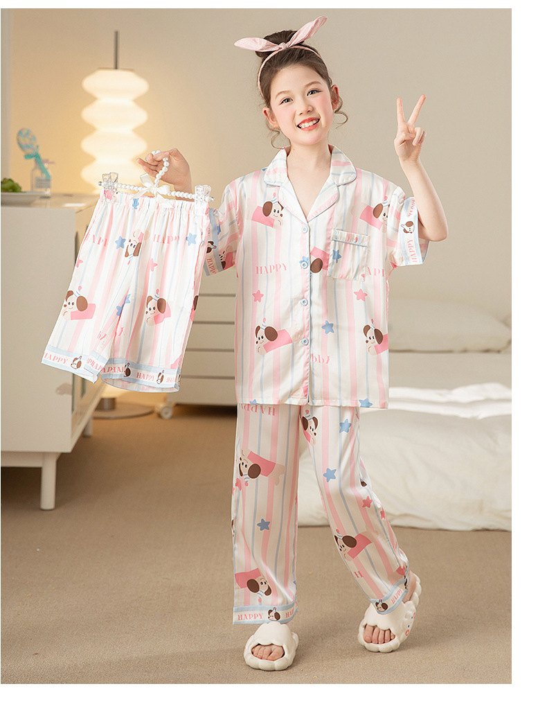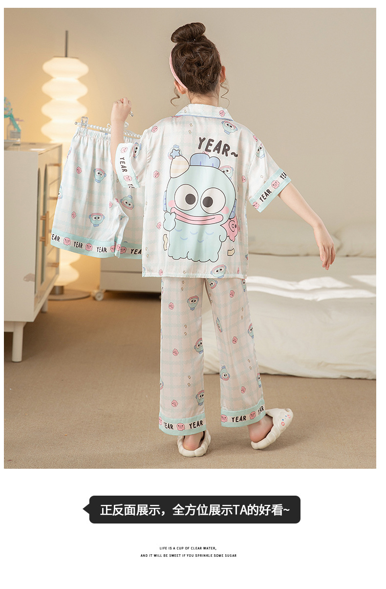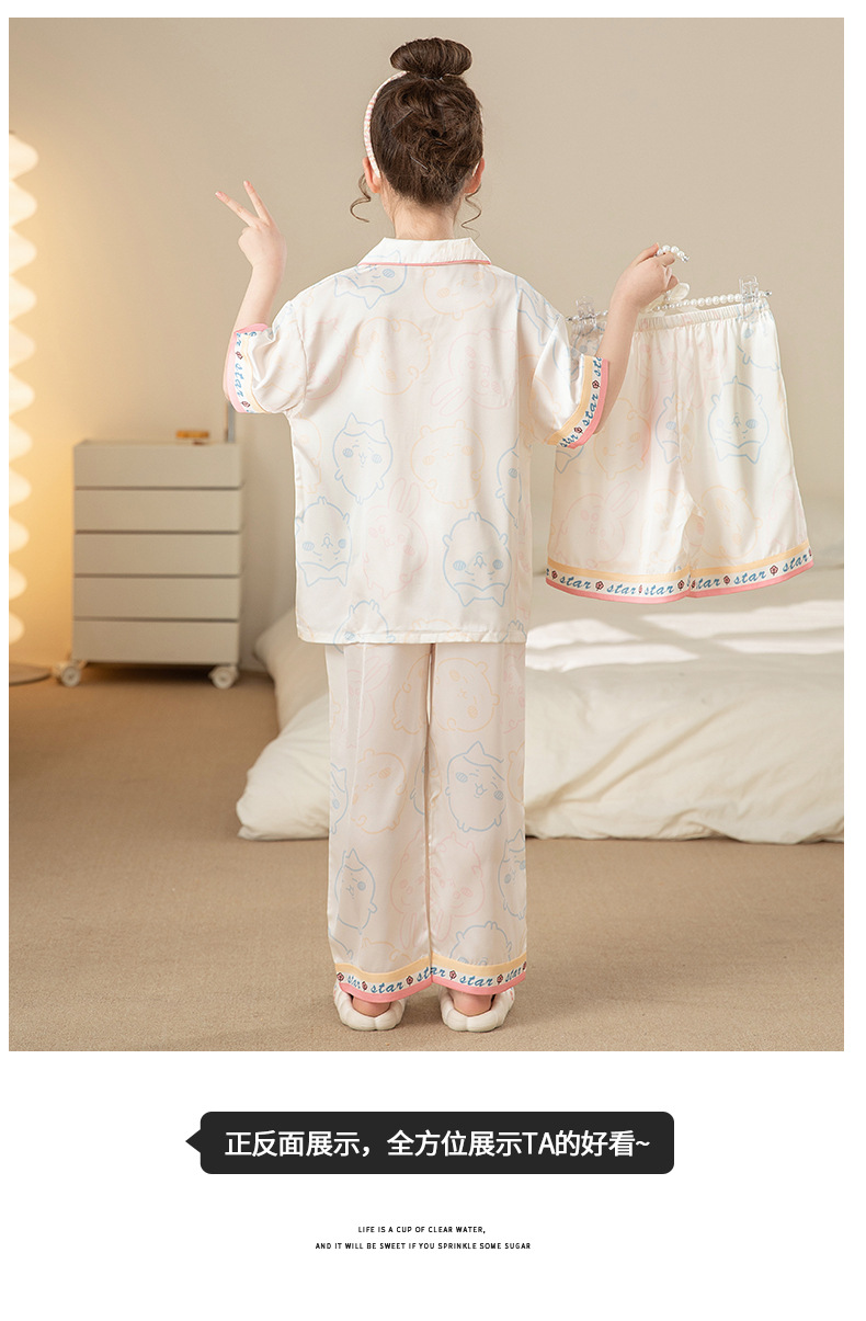 잠옷 어린이 여름 아이스 실크 소녀 3 종 세트 얇은 반팔 여름 소녀 서양식 아기 홈 의류 세트