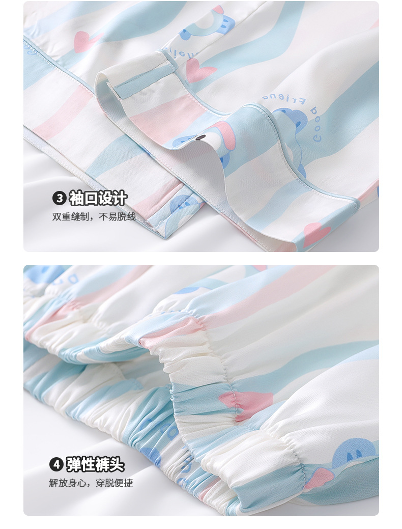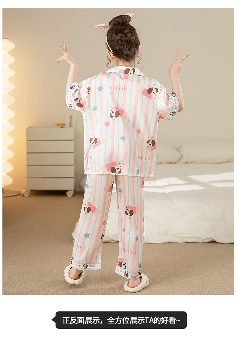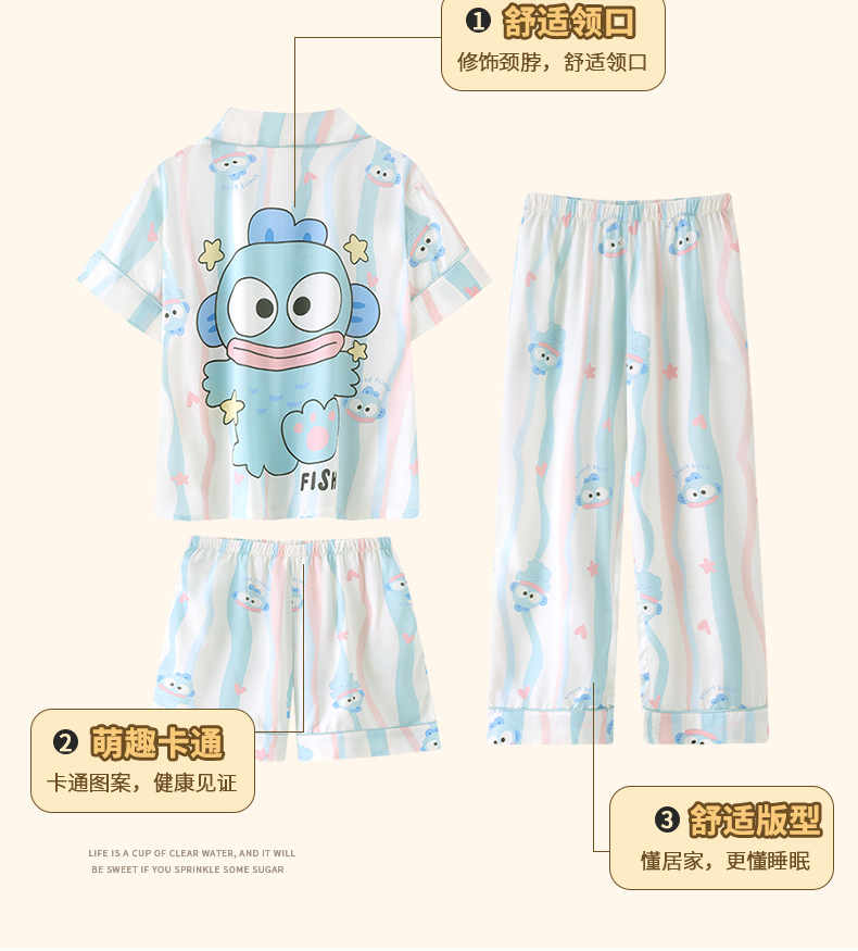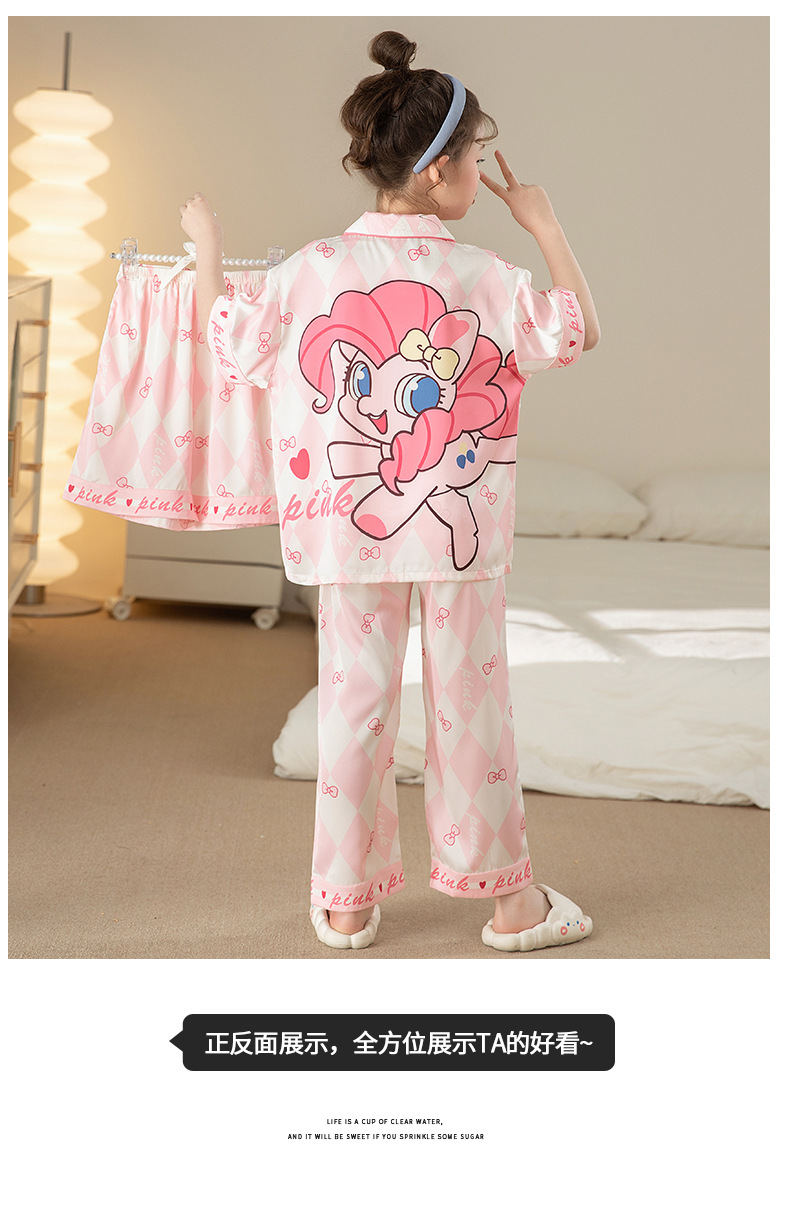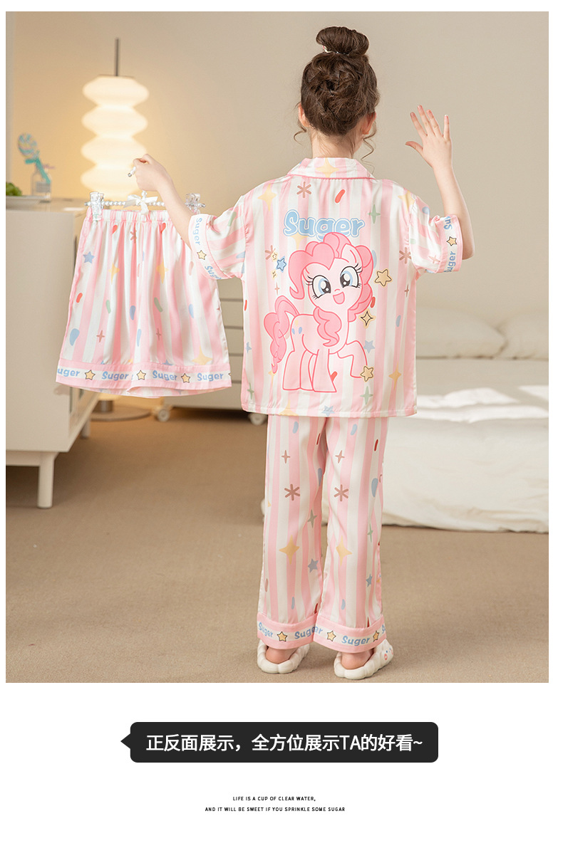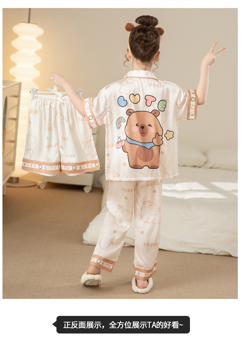 잠옷 어린이 여름 아이스 실크 소녀 3 종 세트 얇은 반팔 여름 소녀 서양식 아기 홈 의류 세트