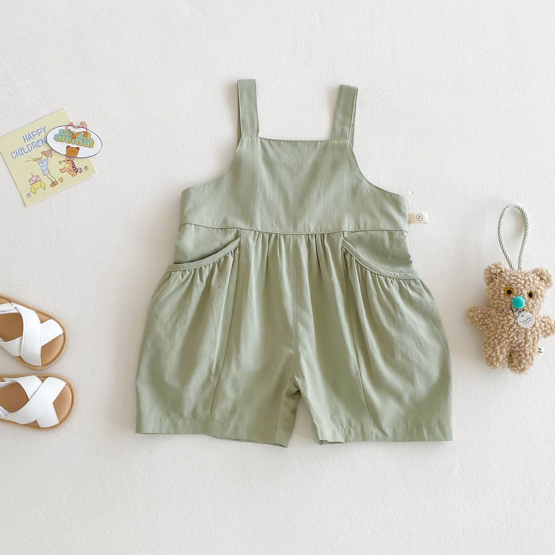 어린이 솔리드 컬러 스트랩 바지 2025 새로운 여름 소녀 서양식 한국 스타일 디자인 센스 캐주얼 바지 아기 바지 얇은스토어 가기